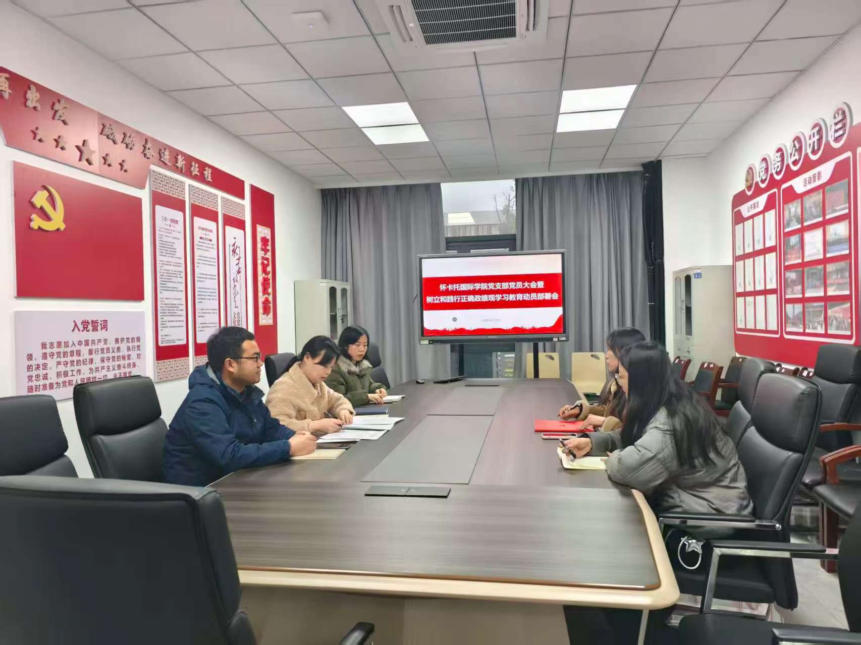 3月16日,怀卡托国际学院党支部召开党党员大会暨树立和践行正确政绩观学习教育动员部署会,深入学习贯彻习近平总书记关于树立和践行正确政绩观的重要论述、中央党的建设工作领导小组会议精神,贯彻落实教育部党组会议、省委常委会暨省委党的建设工作领导小组会议、省政府党组(扩大)会议精神和省委教育工委会议精神,部署启动支部学习教育工作,国际学院全体党员及非党员干部参加了本次学习。