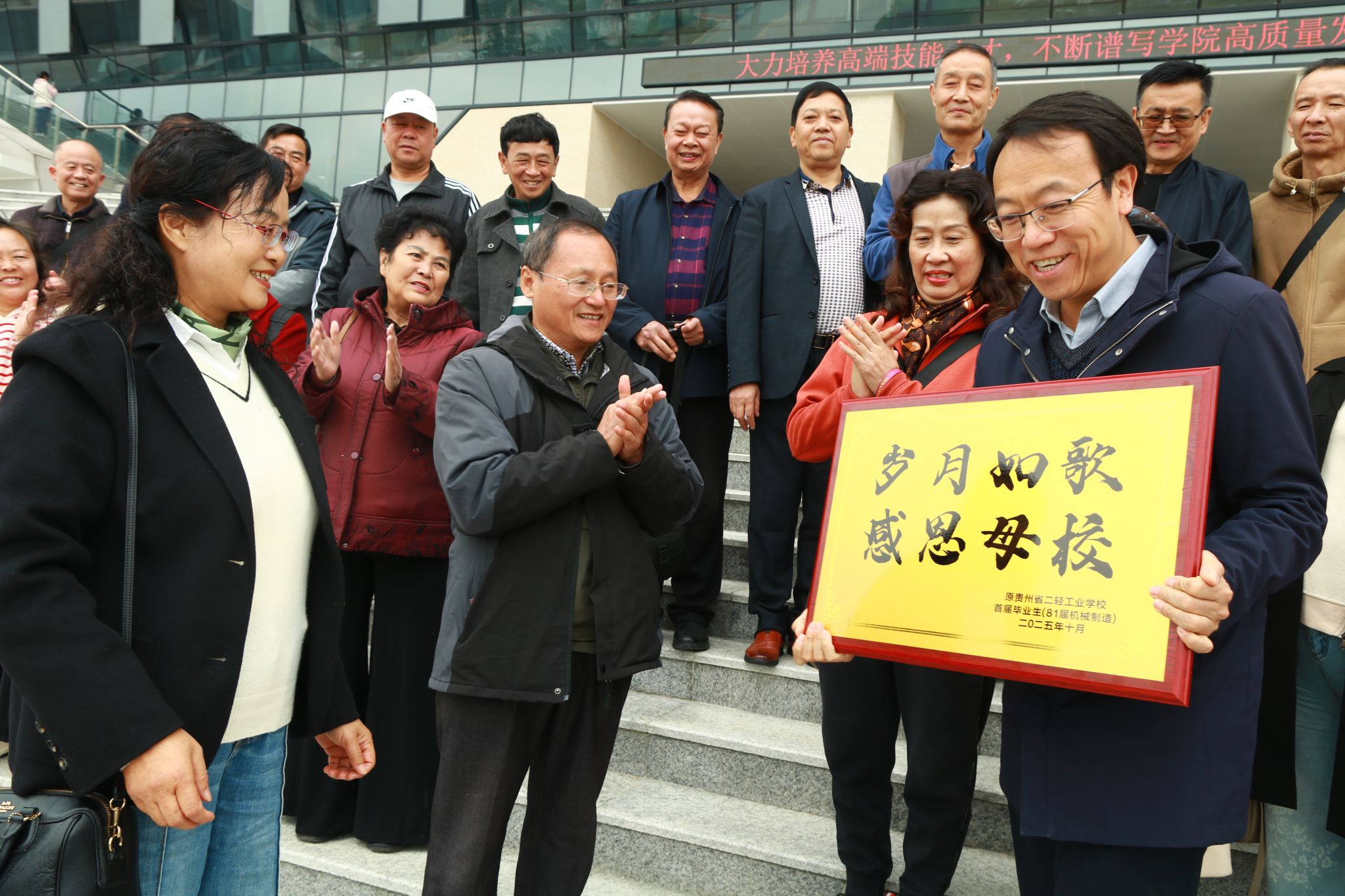 校友们一行先后走访知知馆、精工楼等校园地标,每到一处都驻足细观,不时交流着今昔变化。在知知馆前的南广场,校友们不仅通过合影定格重逢瞬间,更代表全体81届同窗向母校郑重赠送“岁月如歌感恩母校”牌匾,以朴素文字表达四十六载的牵挂与感念。学院党委副书记任世晟代表学校对校友们“常回家看看”表示感谢,他指出,校友们的关注与支持是学校发展的重要动力,期待大家持续关心母校建设,并衷心祝愿各位校友身体健康、生活幸福。