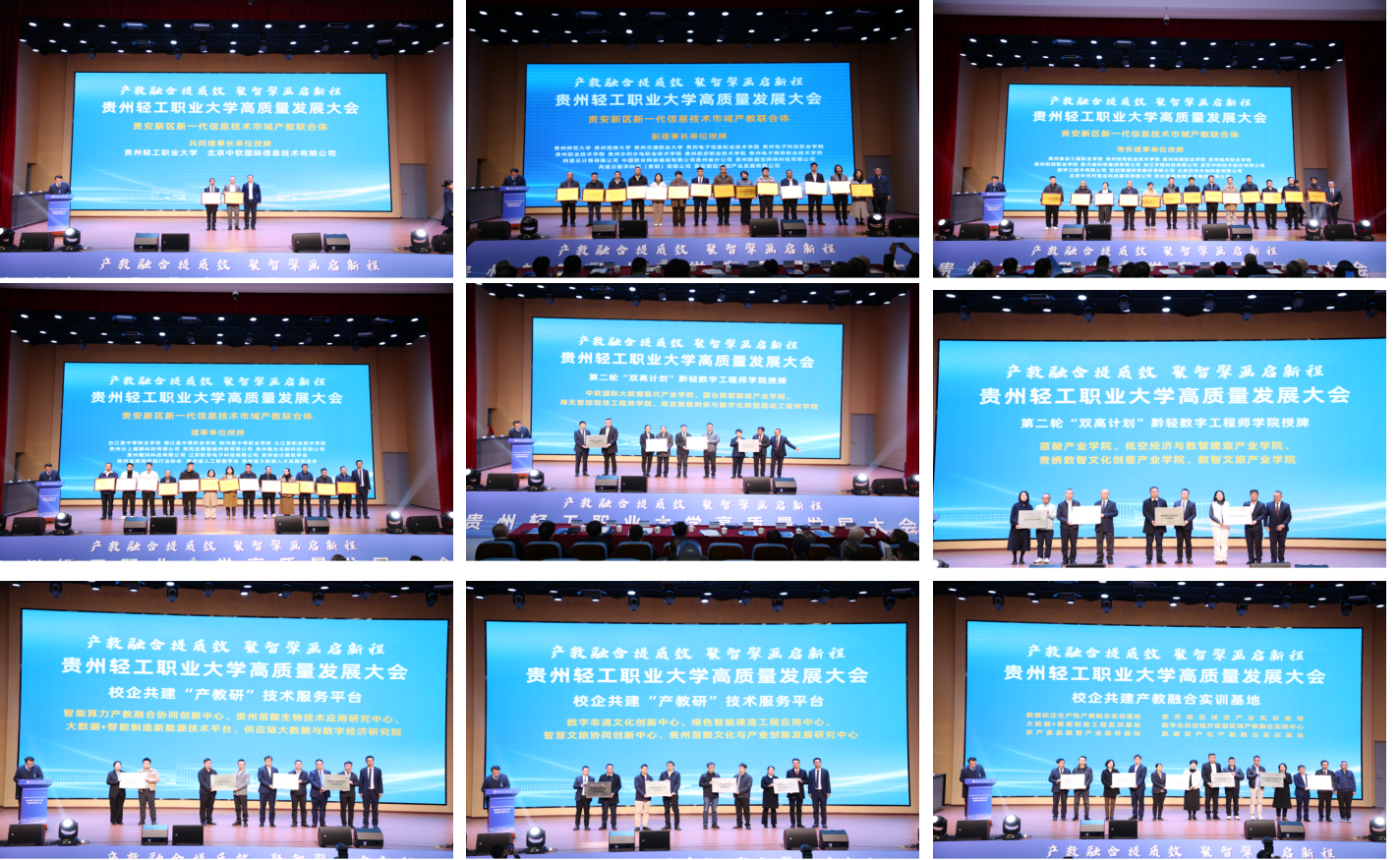 会上,“贵安新区新一代信息技术市域产教联合体”宣告启动运行。该联合体由贵安新区牵头推动,整合政府、行业、企业、学校四方资源,致力于打造支撑贵州数字经济高质量发展的重要载体。学校同步揭牌了八大“产教研”技术服务平台,包括智能算力产教融合协同创新中心、智慧酿造工程技术研究中心等;共建六大产教融合实训基地,覆盖数据标注、智能制造、低空经济等前沿方向,并推动中软国际大数据现代产业学院、苗酸产业学院等八大工程师学院落地,为高素质技术技能人才培养提供全方位支撑。在国际合作板块,学校展示了“贵匠工坊”建设成果,并与比亚迪、海天集团签署共建协议,推动职业教育标准与国际产能合作深度融合。