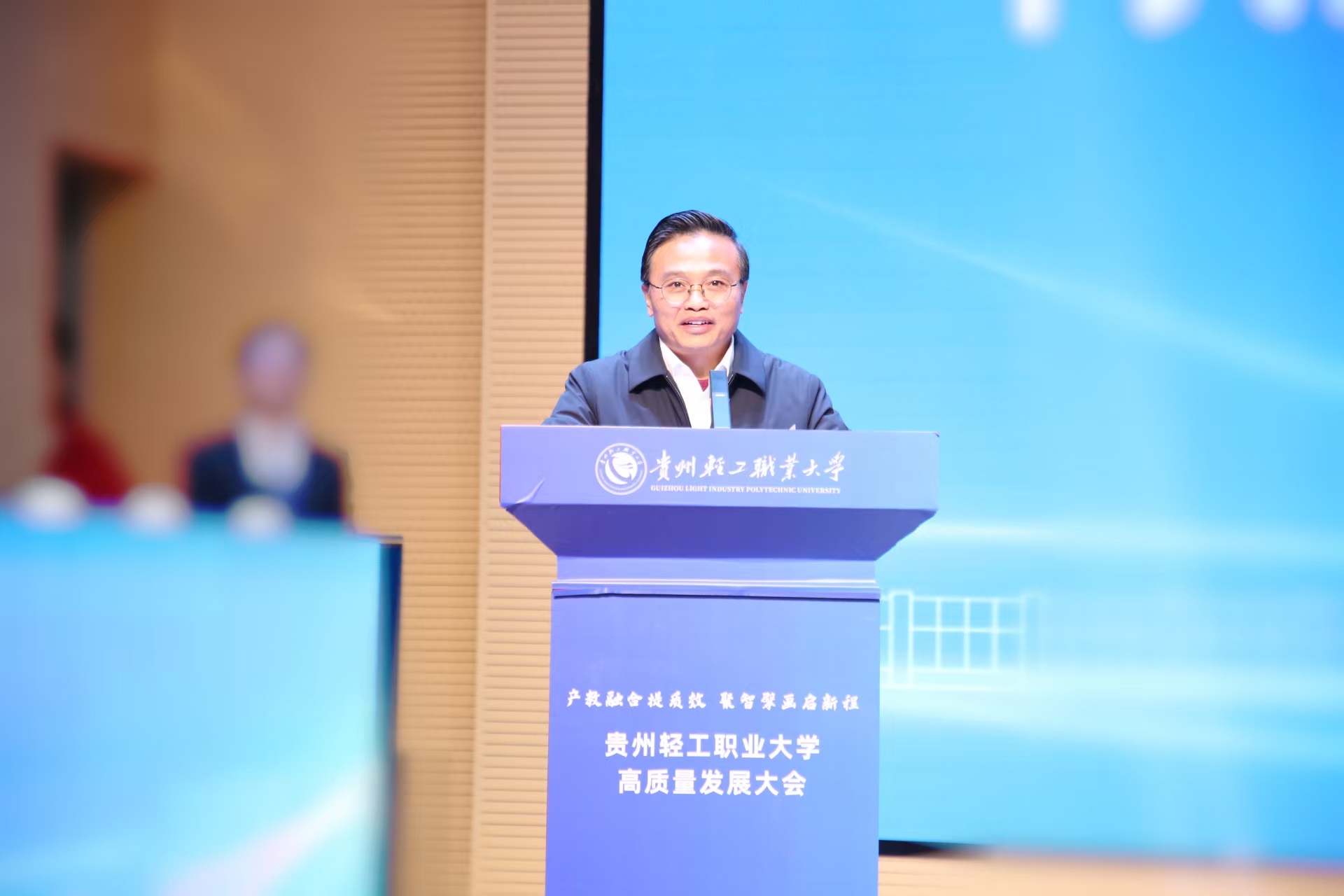 贵州省教育厅党组成员、副厅长张命华,贵安新区花溪大学城党工委副书记、管委会主任刘华等领导出席并讲话,贵州轻工职业技术学院党委书记张勇致欢迎辞,党委副书记、院长杨天仪主持领导嘉宾讲话环节的会议。