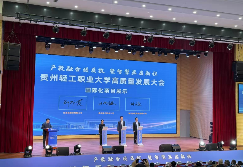 2025年11月28日,贵州轻工职业大学高质量发展大会圆满举办。大会现场,校企合作成果丰硕,国际化办学再添新动能——海天塑机集团捐赠专项奖学金、颁发定制徽章,学校分别与海天集团、比亚迪股份有限公司签约共建“贵匠工坊”,一系列务实举措奏响“校企同行、职教出海”的协作强音。