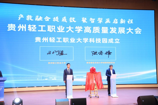 贵州轻工职业大学科技园由学校与贵安新区花溪大学城区管委会携手共建,是我校深入贯彻落实党的二十届四中全会精神及省委十三届八次全会精神,谋划“十五五”发展规划的重要举措,更是探索产教融合体制机制创新、推动教育科技人才一体化发展的关键载体。作为打破校地校企壁垒的“突破口”,科技园将搭建资源融通平台,实现“一子落地,满盘皆活”的发展效应,定位为集技术研发、成果转化、企业孵化、人才培养于一体的区域性创新高地。