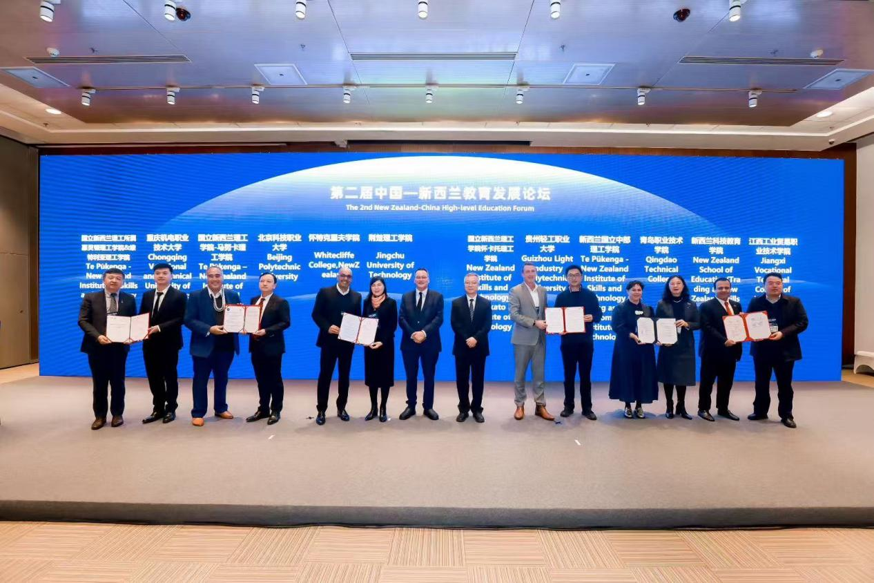 2025年10月30日,在中国国际交流协会年会中举办的第二届中国—新西兰发展论坛上,贵州轻工职业大学与新西兰怀卡托理工学院正式签署本科层次中外合作办学项目协议。签约仪式由中国教育部副部长任友群和新西兰大学教育部长、科学、创新与技术部长沙恩·雷蒂博士(Hon. Dr. Shane Reti)共同见证,标志着中新职业教育本科层次合作实现新突破。