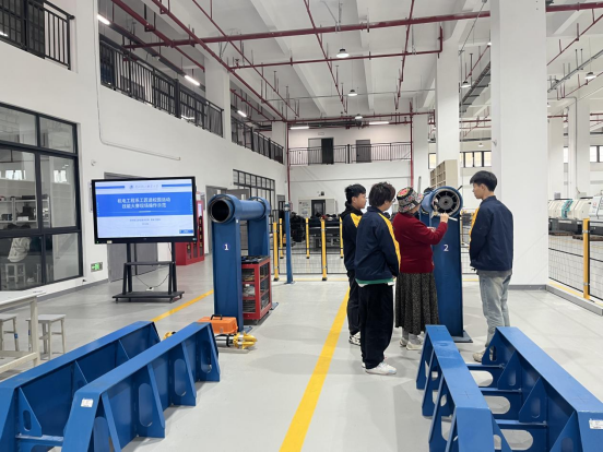 本次活动以“匠心传承薪火旺,技能示范助成长”为主题,聚焦船舶主机和轴系安装调试等专业核心技能,通过“实操示范+互动交流+总结分享”的形式,搭建起技能传承的桥梁。活动现场精心设置了操作展示区与观摩区,主题展板醒目亮眼,移动电子屏滚动播放技能大赛成果,浓厚的技能氛围扑面而来。