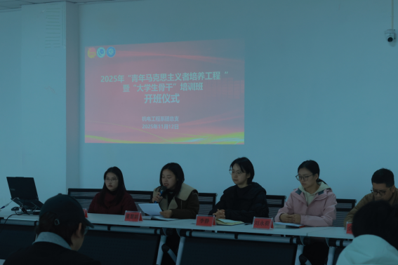 为深入学习贯彻习近平新时代中国特色社会主义思想,培养信仰坚定、理想远大、能力突出的青年政治骨干。2025年11月12日,机电工程系团总支于精工楼520举行2025年“青年马克思主义者培养工程”暨“大学生骨干”培训班开班仪式,系党总支副书记李静、团总支书记董慧娟、专职组织员刘永荷、学生党支部宣传委员余正隆、组织委员陈敏出席仪式,青马工程培训班全体学员参加。