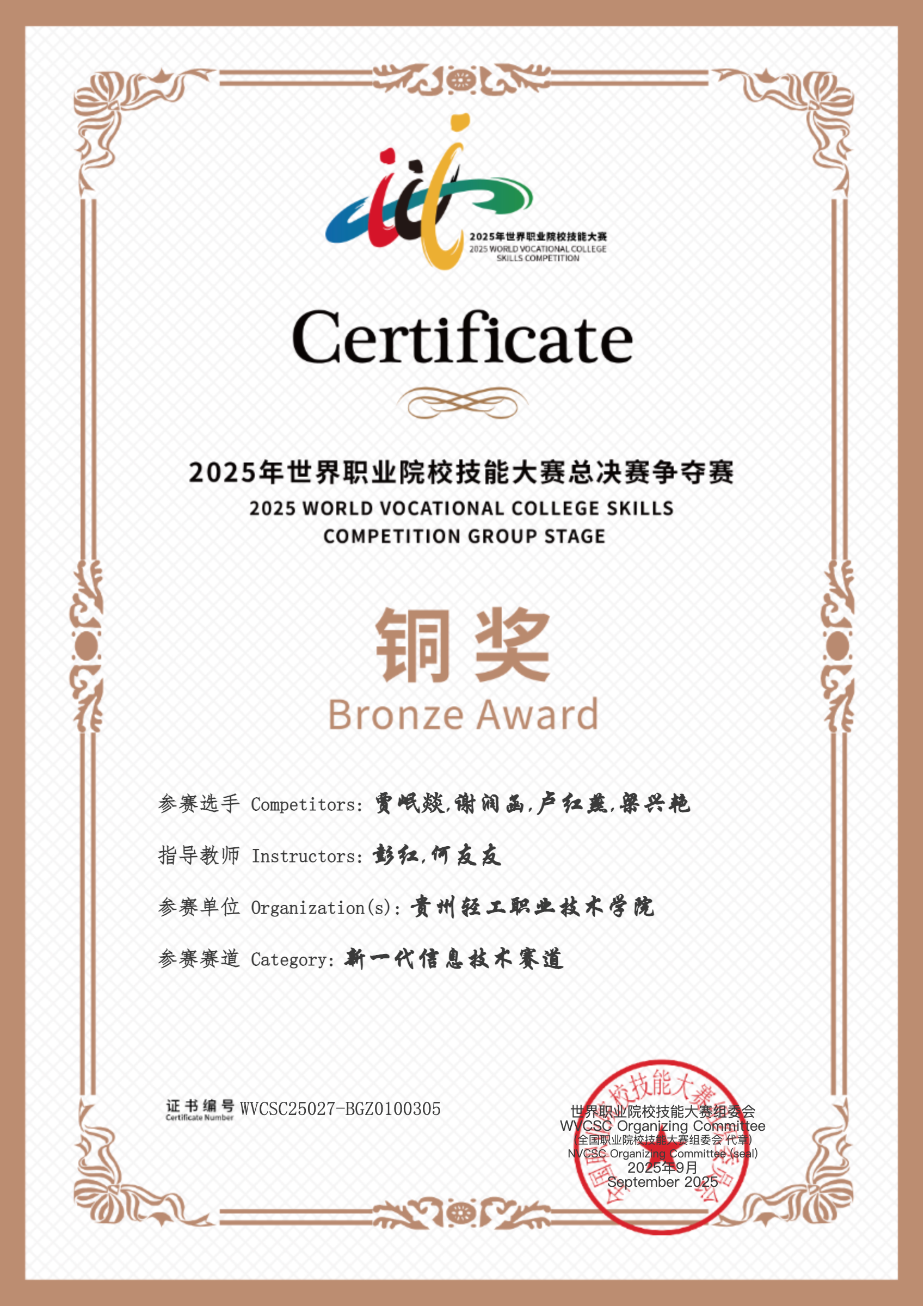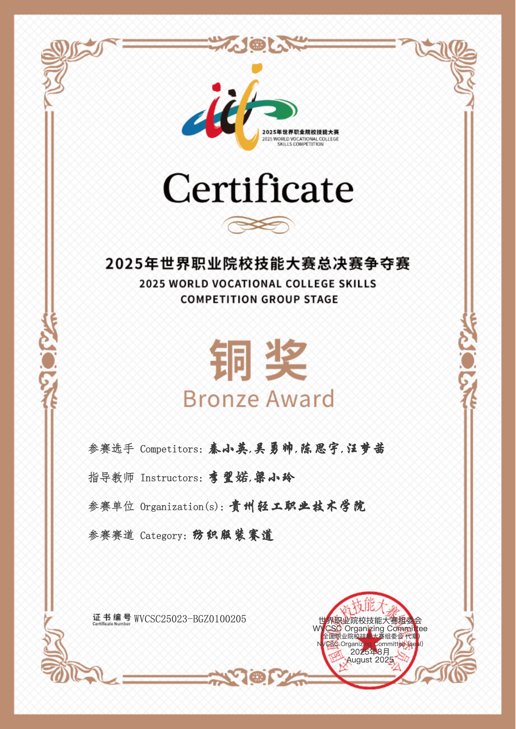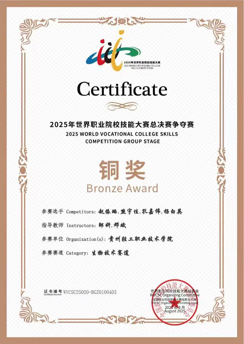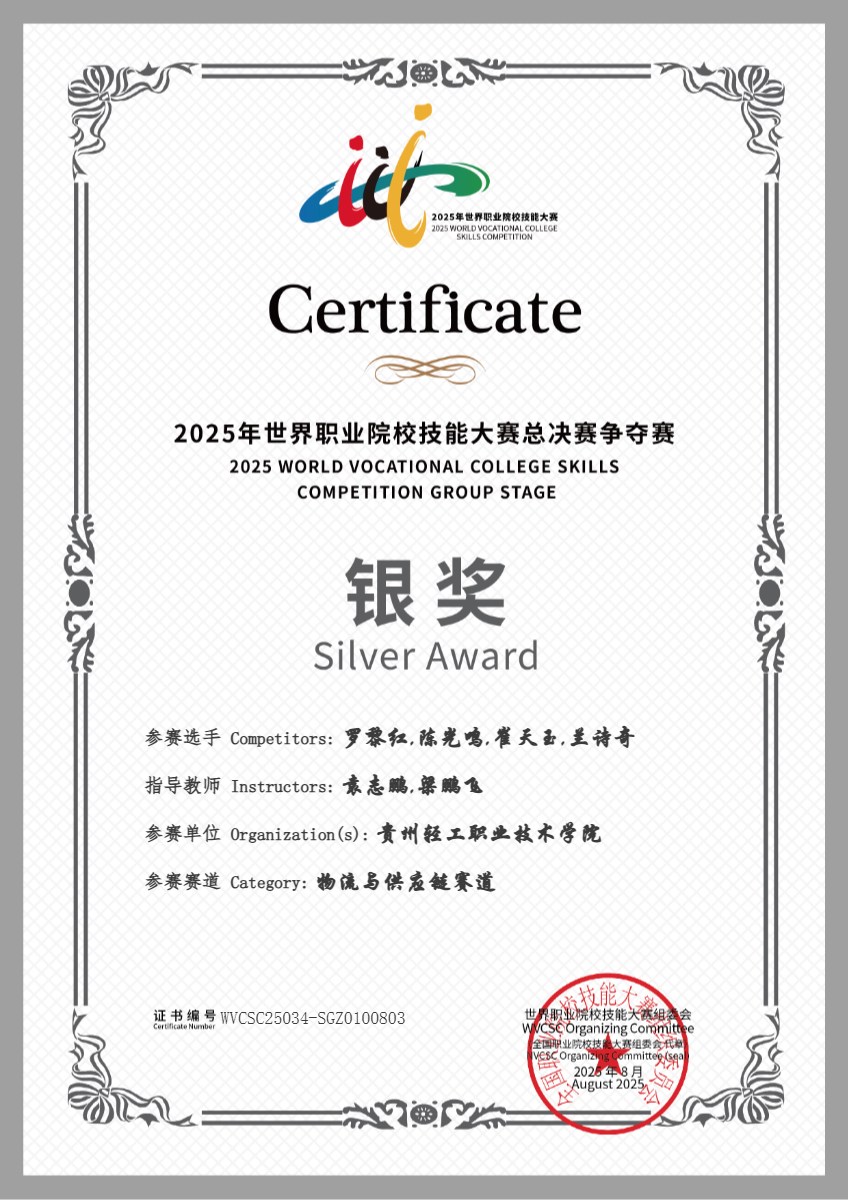 2025年贵州轻工职业大学国赛获奖证书-2银8铜1优胜