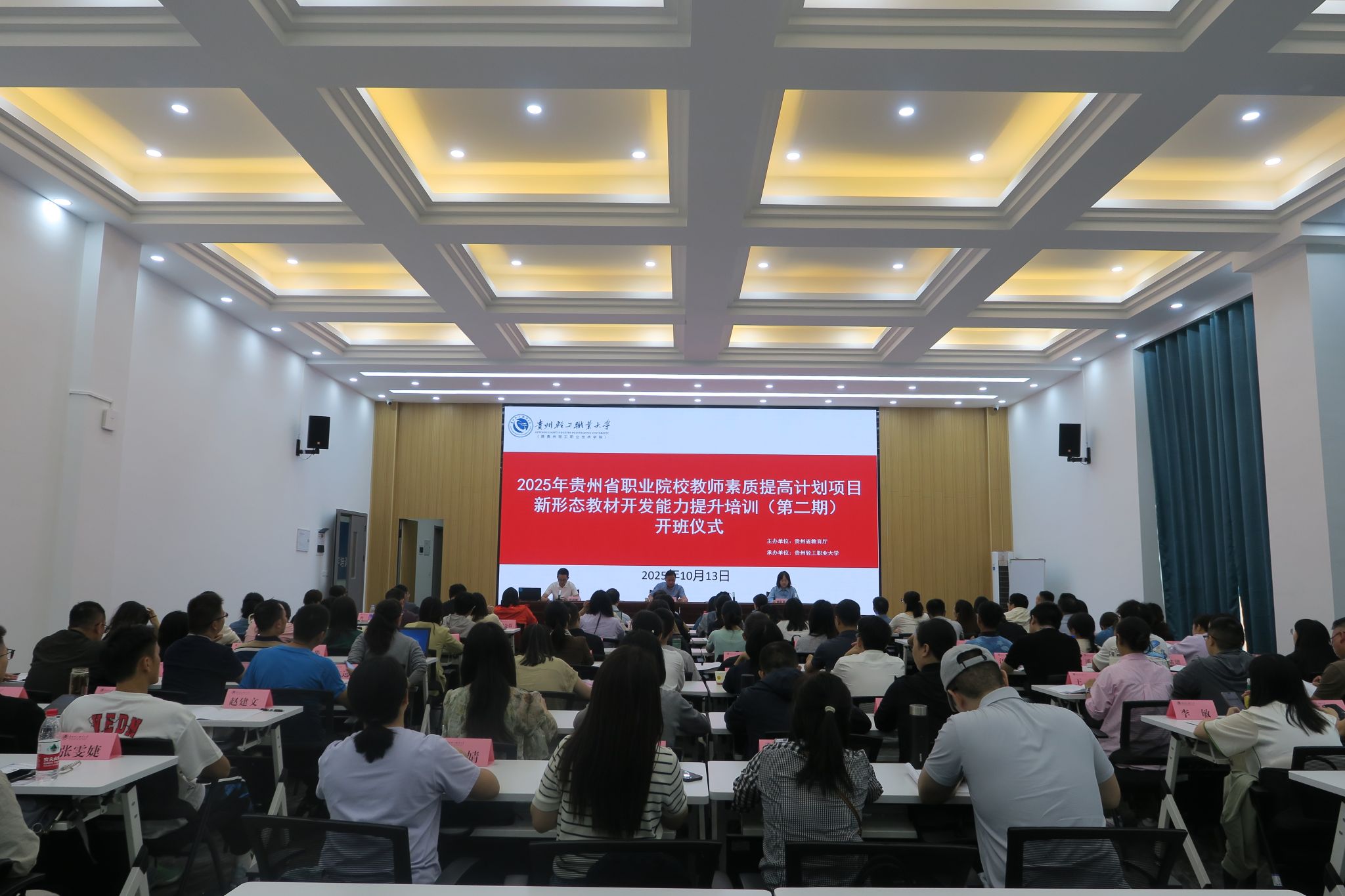 10月13日下午,由贵州省教育厅主办、贵州轻工职业大学承办的2025年贵州省职业院校教师素质提高计划项目——新形态教材开发能力提升培训第二期(高职班)开班仪式在学校骋怀楼附楼培训教室隆重举行。本期培训是针对省内高职院校教师的专项培训,旨在深入贯彻落实国家职业教育改革实施方案,推动高等职业教育高质量发展。