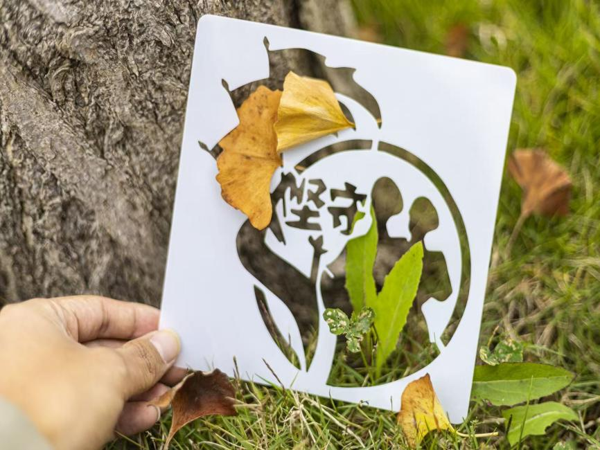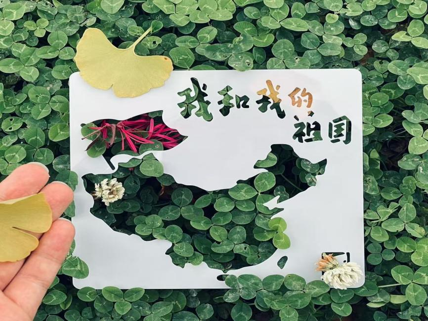 活动为每位参与者提供了一套以国旗、天安门等为元素的爱国主义题材镂空卡纸。这不仅是拍照的道具,更是一个移动的“取景框”、一个思考的“过滤器”。同学们穿梭于校园的各个角落,进行着一场关于“框景”艺术的探索:他们以天安门的轮廓为“画框”,将图书馆前的晨读身影纳入其中,探讨着建筑与人的和谐关系;他们利用国旗图案的镂空,捕捉光线在教学楼立面上的微妙变化,进行着一场生动的“光影叙事”。每一次按动快门,都是一次对构图、透视和正负形关系的反复推敲,也是一次将爱国符号与校园日常进行艺术重构的创新实践。