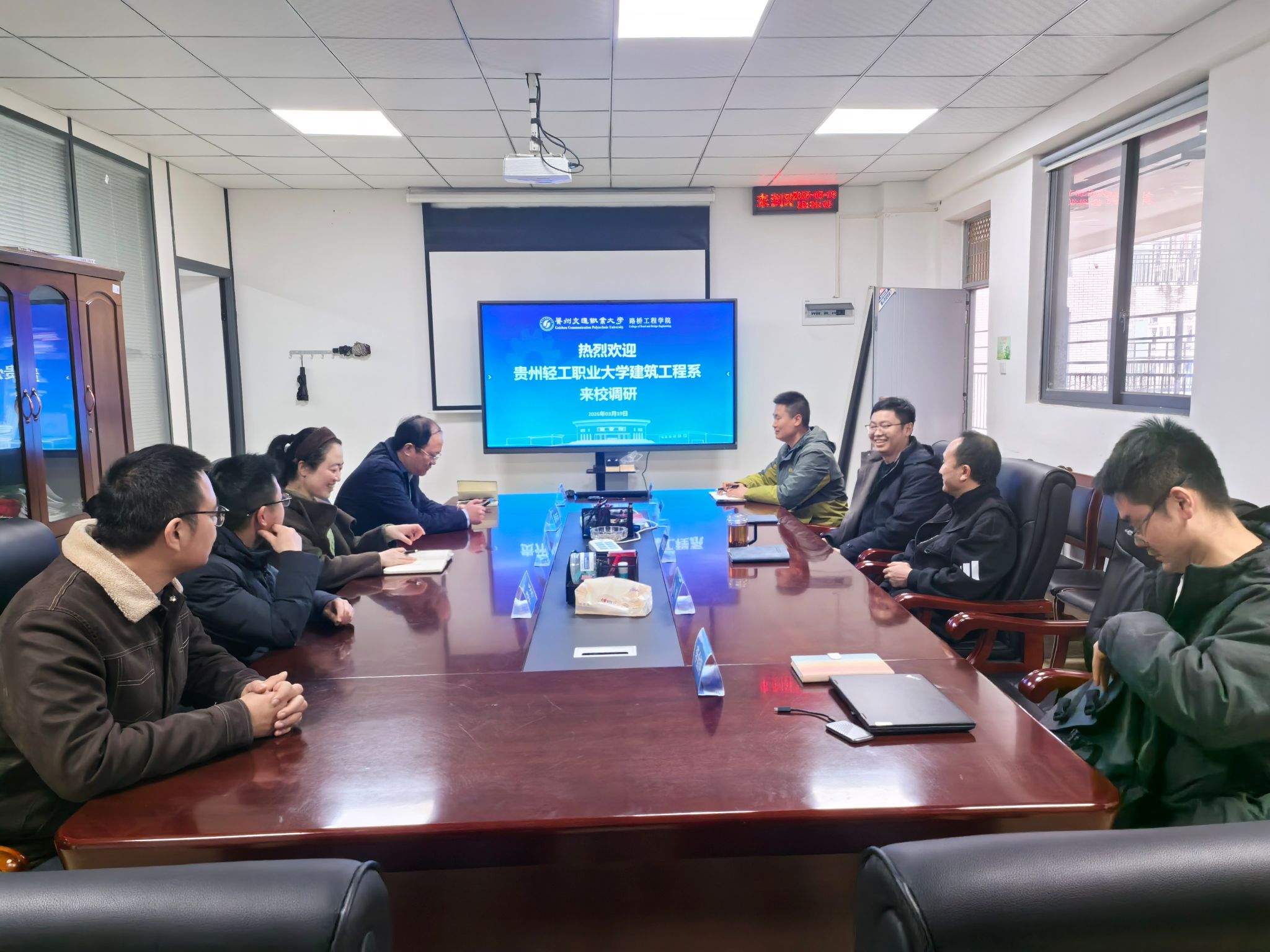 为加快推进职业本科专业申报及专业实训基地建设,学习借鉴省内兄弟院校的先进经验,2026年3月19日,建筑工程系副主任陆端率系部相关教师一行,赴贵州水利水电职业技术学院土木工程系和电力工程系、贵州交通职业大学路桥工程学院开展专题调研交流。