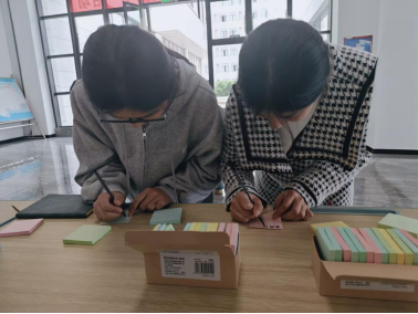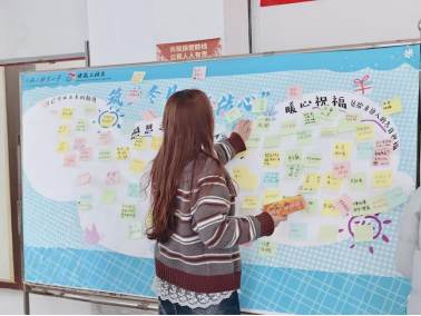 活动开始后,同学们踊跃参与,纷纷来到布置温馨的活动区域。大家手持彩笔,在便利贴上认真书写真挚话语——或是对同窗好友的美好祝福,或是对未来学业的殷切期许,亦或是对老师辛勤付出的衷心感谢。一字一句温情流转,一笔一画真情流露,,每一张便利贴都承载着同学们内心最真诚的心声。书写完毕后,大家纷纷将便利贴粘贴到相应的主题区域。很快,一面贴满暖心话语的“心愿墙”便呈现在众人眼前,成为冬日校园里一道独特且温暖的风景线。