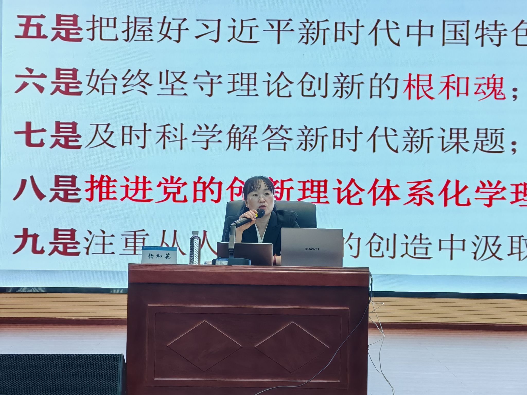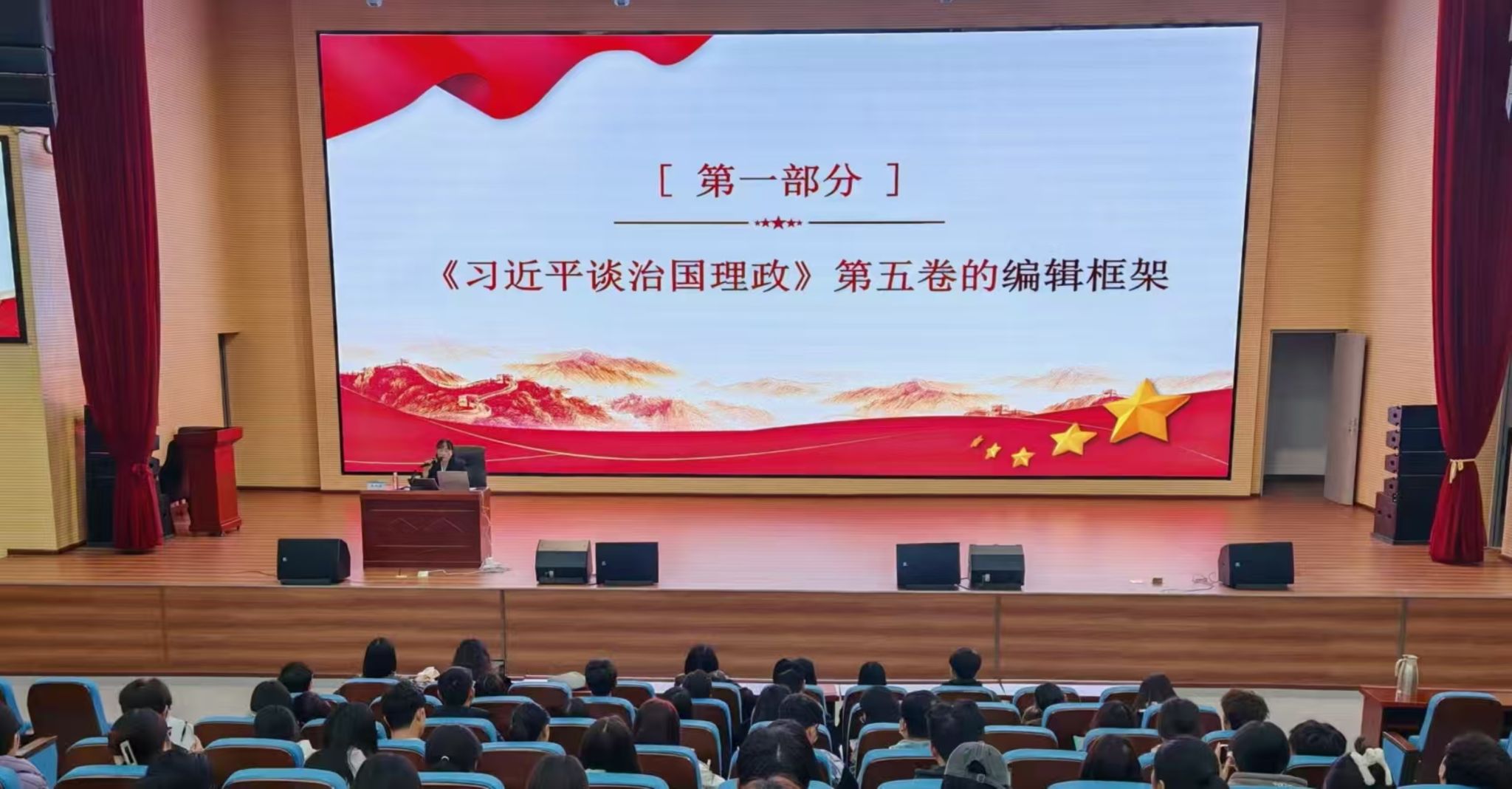 杨和英教授从《习近平谈治国理政》第五卷的编辑框架、核心内容、学习方法三个方面进行重点讲授,案例生动、数据翔实,让参加学习的师生对党的创新理论有了更全面的理解。