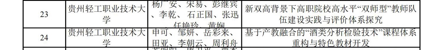 其中,我系黄洪媛教师的《食品大类专业产教融合实训基地高质量发展路径研究》获批全国食品产业职业教育教学改革与研究课题立项。杨广安教师牵头的《新双高背景下高职院校高水平“双师型”教师队伍建设实践与评价体系研究》、申可教师牵头的《基于产教融合的“酒类分析检验技术”课程体系重构与特色教材开发》成功获得全国生物技术职业教育指导委员会教育教学改革项目立项。