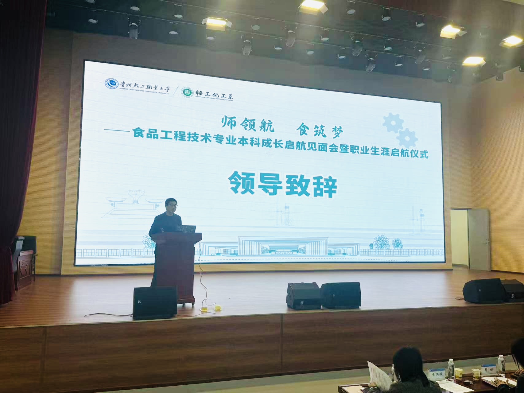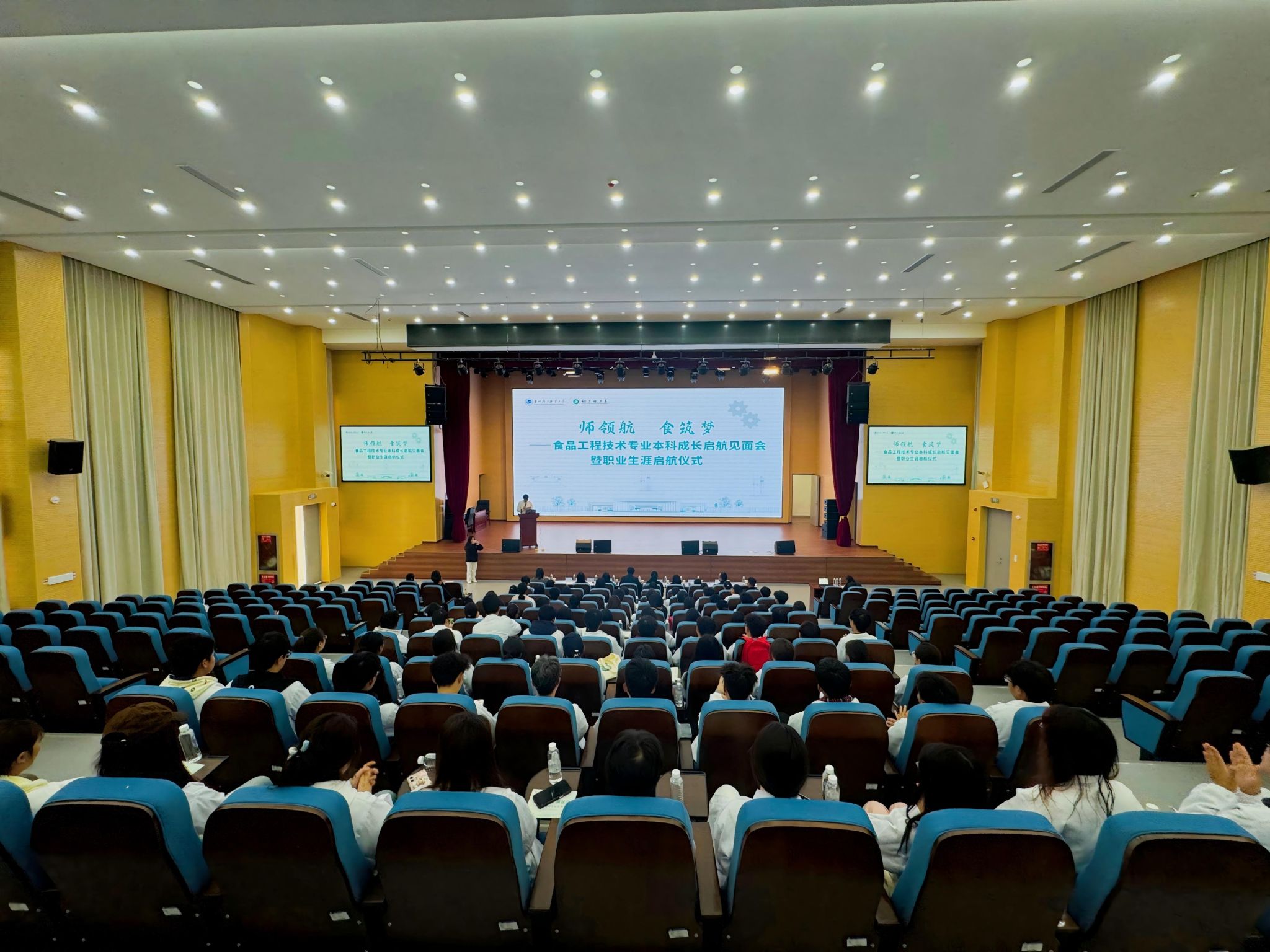 2025年11月7日,食品工程技术专业首届本科班成长启航见面会暨职业生涯启航仪式在崇匠楼学术报告厅隆重举行。学院党委委员、副院长王珂佳,轻工化工系领导班子、全体学业导师、本科班全体学生、辅导员共同参与了此次活动。
