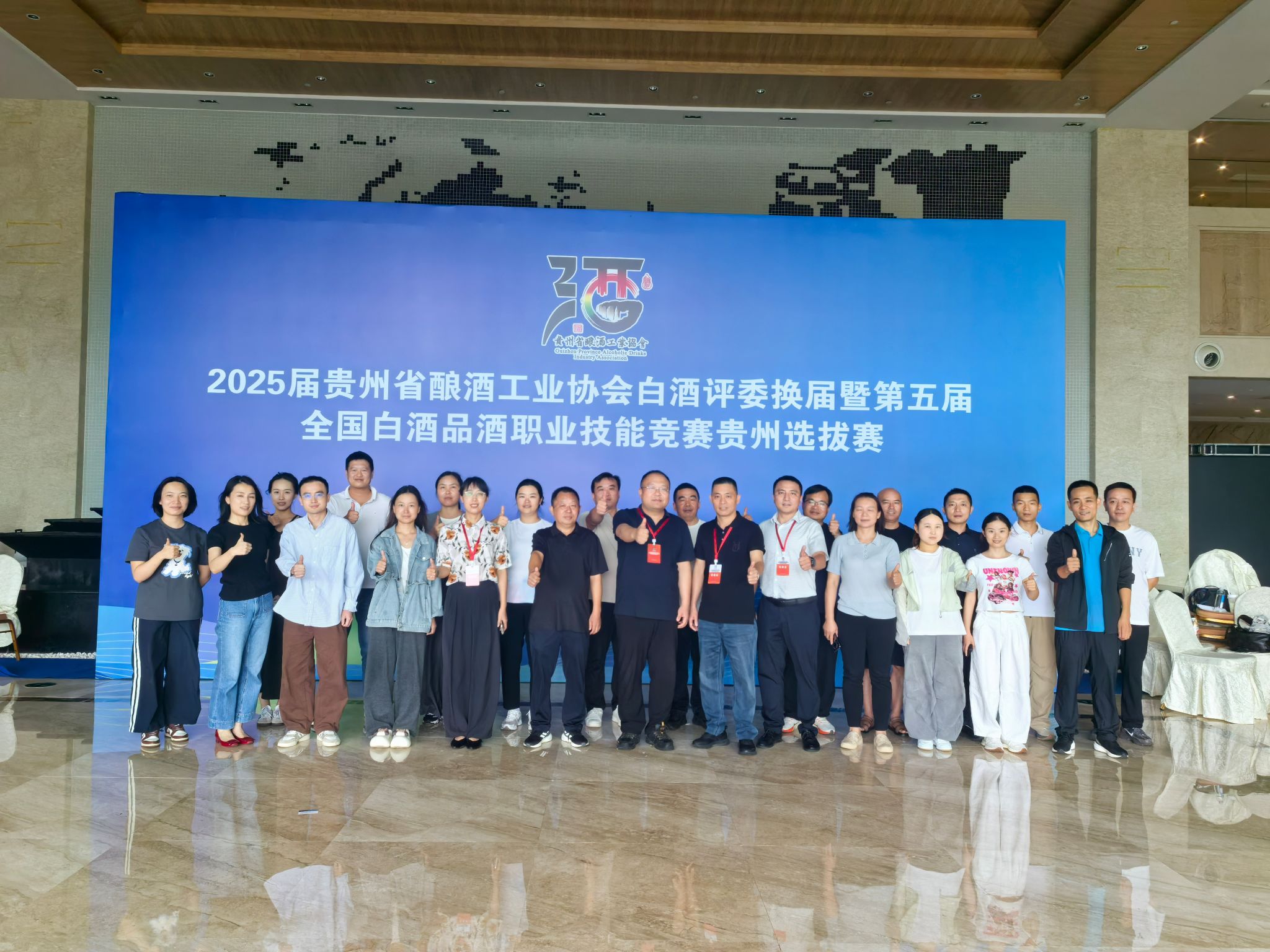 2025届贵州省白酒评委换届评选活动中 我校教师团队与毕业生代表合影