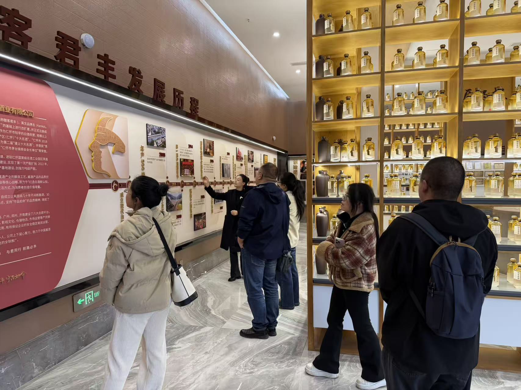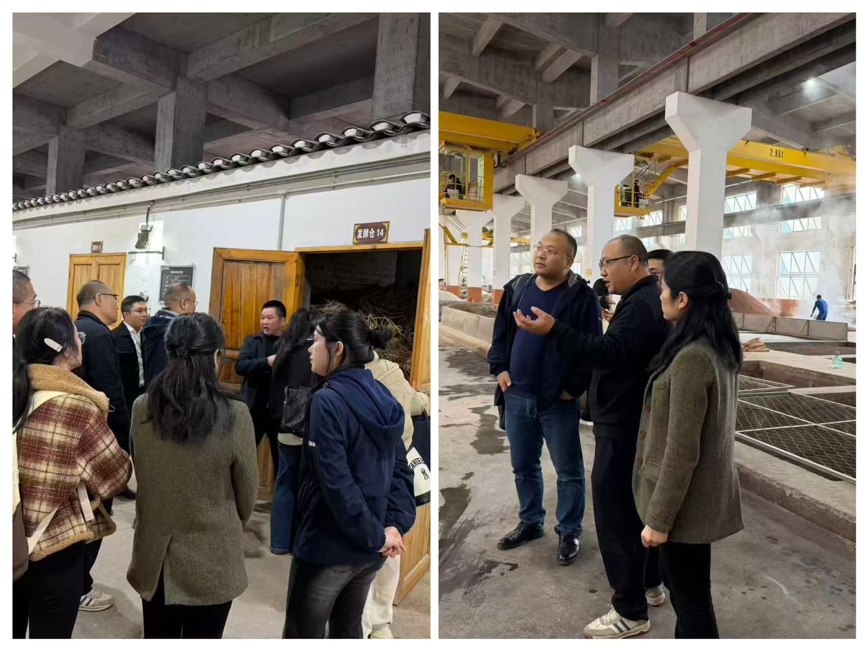 当日下午,调研团队前往贵州酣客君丰酒业有限公司继续开展调研。团队参观企业展厅,系统了解其发展历程与企业文化。随后,总工程师佘荣书、技术中心总监邓昌伟及质量部部长赵聪等与调研团队座谈交流。佘总充分肯定我系深入企业对接需求、强化酿酒专业实践能力的做法,认为这将大幅缩短学生入职适应期。邓总则从选人角度提出,鼓励学生参与技能竞赛,为展示能力与企业选拔人才提供良好平台。