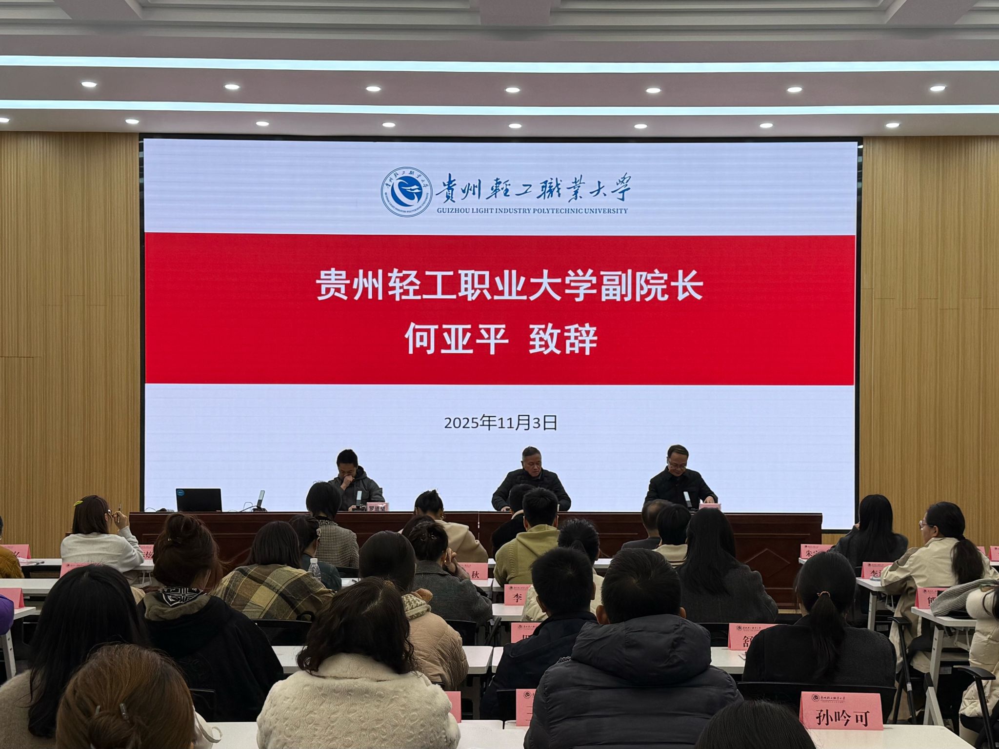 2025年11月3日下午,由贵州省职业院校教师素质提高计划项目支持的“教师职业素养评价方案设计能力提升培训”第三期(高职一班)开班仪式在贵州轻工职业大学骋怀楼一楼培训教室顺利举行。贵州轻工职业大学副院长何亚平、发展规划与质量保障处副主任罗道坚、继续教育中心(技能鉴定所)主任黄涛出席仪式,来自全省高职院校的75名专业带头人、骨干教师及专业教师参加培训。