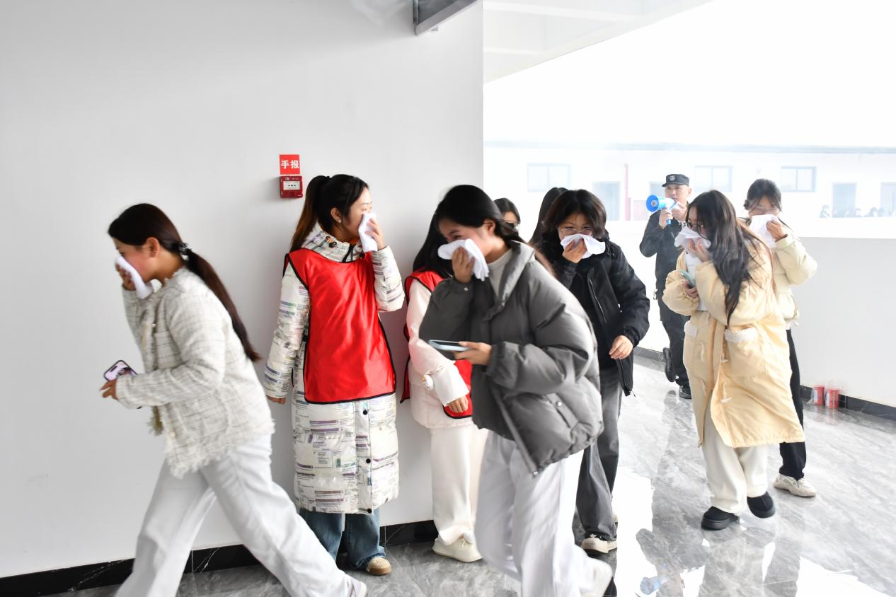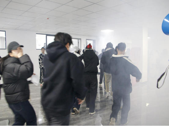随着模拟烟雾升起、消防警报拉响,应急逃生演练启动。同学们按前期培训要求迅速响应,紧张有序沿预定路线疏散,短短数分钟内全体师生安全抵达指定集结区域,圆满完成疏散任务。