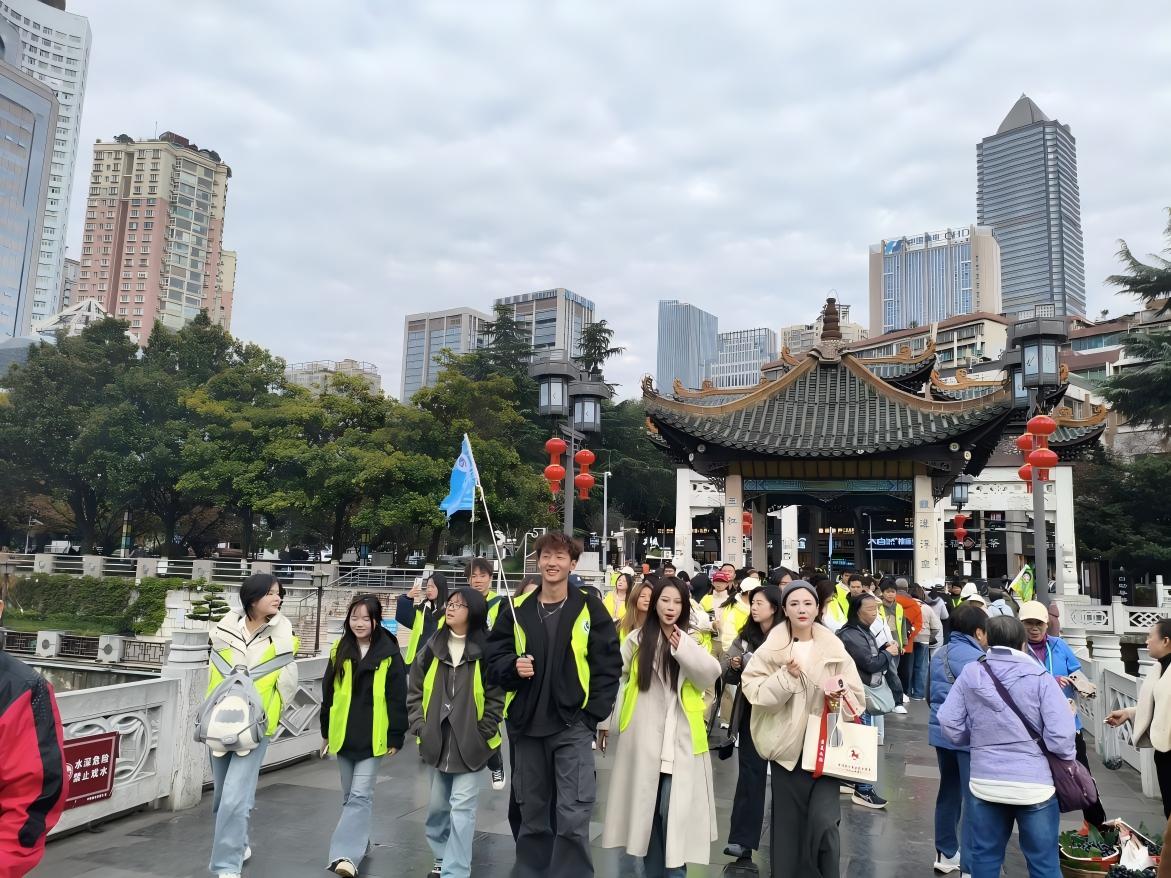 为深化产教融合、创新旅游管理专业人才培养模式,切实提升学生职业素养与实践能力,2025年11月19日—21日,贵州轻工职业大学文化与旅游系旅游管理专业2025级1-5班共计200余名学生,在旅游教研室唐春婷、陈琦琪、万青青、王乐老师的带领下,奔赴“贵阳文化地标”—甲秀楼开展第四期旅游专业技能实训活动。本次实训以真实景区为课堂,让学生在解锁导游核心技能的同时,深度感知智慧文旅发展脉搏,实现从课本知识到职业应用的精准衔接。