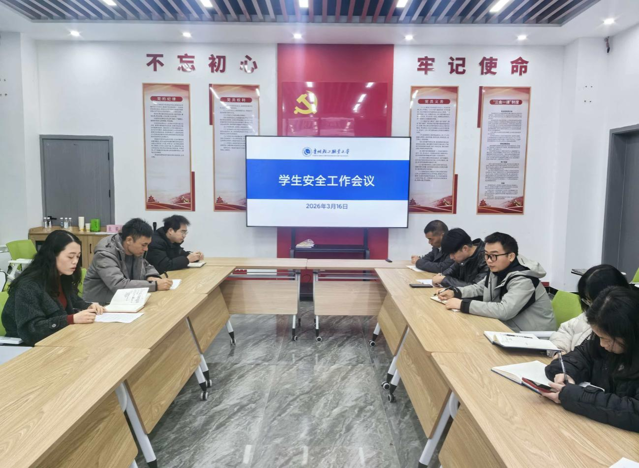 会议通报了近期省内校园安全形势,明确了当前学生安全工作核心任务,并对五项重点工作进行全面部署,压紧压实责任,把工作抓细抓实抓到位。会议要求,各系(院)将上级通知精神传达落实、迅速行动,全面开展安全教育与隐患排查,重点关注“未返校”学生、心理异常学生、“晚归未归”学生等重点人群,做好跟踪管理和安全教育。强化值班值守与夜间巡查,化解矛盾、排查隐患,坚决防范各类安全事故发生,切实保障学生生命健康与校园安全稳定。
