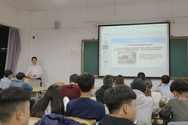 余太游副主任为同学们讲解的是关于“正确认识妥善应对中美贸易摩擦”专题,为同学们介绍了此次中美贸易摩擦产生的时代背景,分析了中美贸易摩擦产生的原因,以及中美之间从破冰到合作再到遏制、从贸易自由化到贸易保护主义的历史巨变过程。