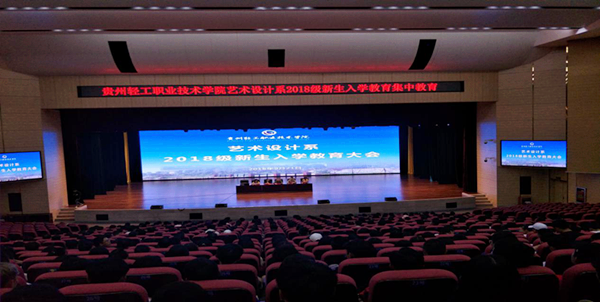金秋的九月,送走了炎炎的夏日,迎来了秋天的金色,同时也迎来了贵州轻工职业技术学院艺术设计系490多名新同学,他们来自五湖四海,因为缘分他们相聚在多彩艺术系这个大家庭中,为了新同学能够更快和更好的适应新的学习和生活环境,艺术设计系在9月21日下午两点在学校大礼堂进行新生入学教育活动。出席此次活动的领导老师有艺术设计系系主任黄振宇、副主任余太游、教学管理科科长张玮、团总支书记杨佳颖、学生管理科科长高云、艺术设计系辅导员班主任和2018级全体新生。