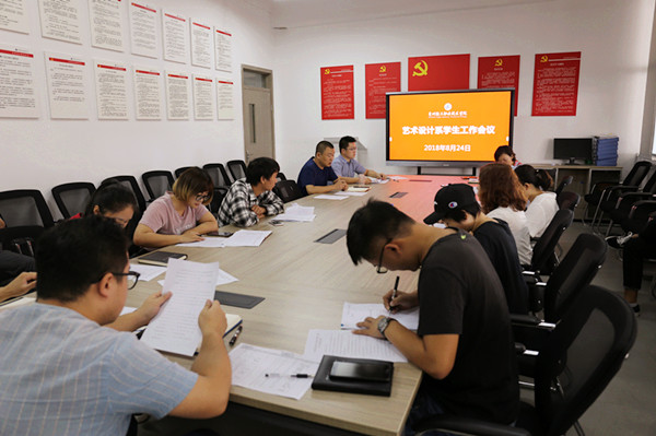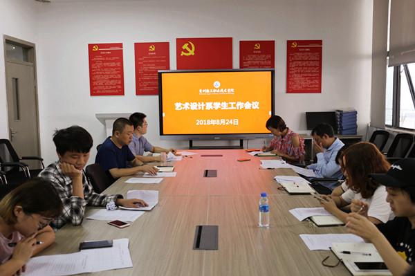 2018年8月24日上午,艺术设计系在1312会议室召开2018-2019学年第一学期第一次学生工作会议,会议由余太游副主任主持,黄振宇主任、学生管理科科长、团总支书记以及2016级、2017级、2018级班主任辅导员老师参加此次会议。