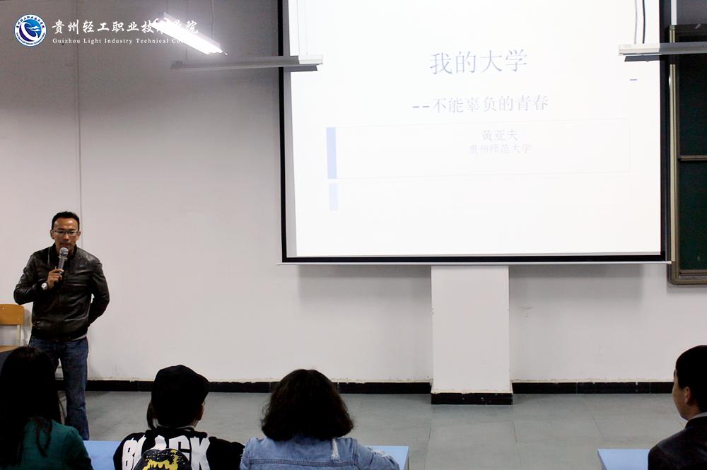 3月22日,艺术设计系邀请了贵州省心理学专家、贵州师范大学副教授、贵州师范大学心里咨询中心主任、国家一级心理咨询师黄亚夫老师为艺术设计系师生做了一场题为《我的大学不能辜负的青春》的励志讲座。