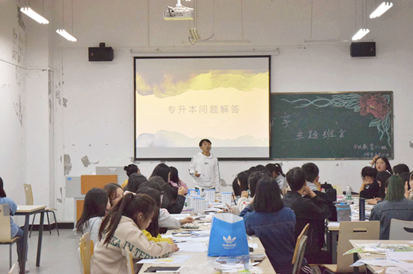 为了鼓励更多同学在学习道路上不断鞭策自己,2018年10月25日20:00-21:30,艺术设计系在1402、1408、1413、1416教室开展特色晚自习·专升本学习经验分享会。