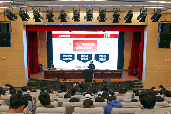 宫老师为同学们讲述了国漫行业的发展历程,分析了现今行业的发展模式,分享了漫画工业化的概念与支撑技术,并结合国漫行业发展现状与发展趋势,以及自己的工作经验与心得体会,为动漫设计专业的学生的就业与职业发展给出了指导性的意见。宫老师希望喜爱动漫的同学们能够提升自己的专业技能,抓住时代发展的机遇,投身到我国正冉冉升起的动漫行业中来。