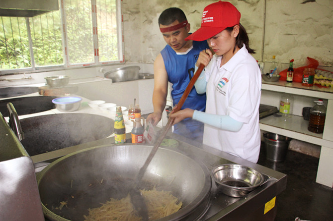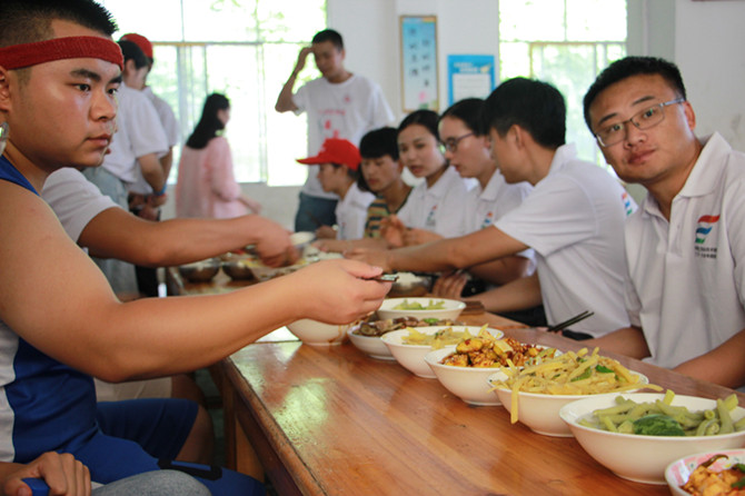 中午的午餐由同学们自己动手制作,劳动最光荣。
