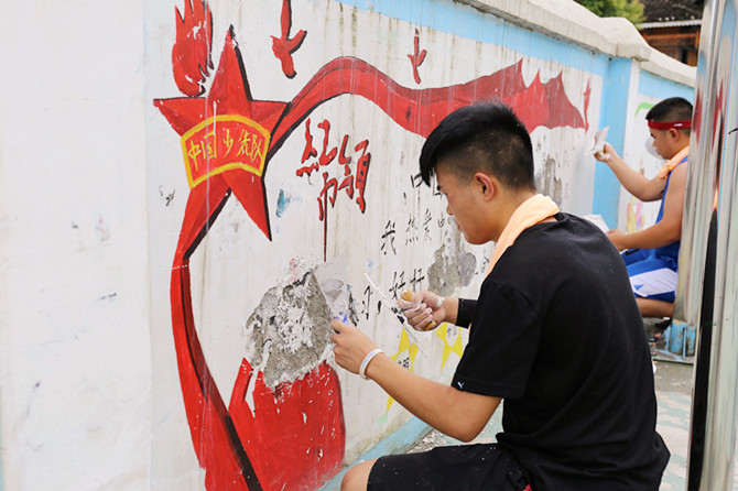 要完成墙绘,首先需要清理修复需要绘画的墙壁,到下午19点已将所有需要绘制墙绘的墙壁完成清理及修复,以及墙绘的初步工作。