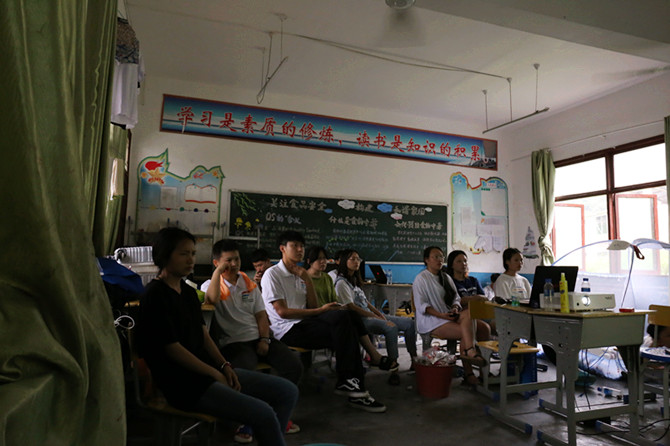 7月7日早上下起了雨,志愿者不得不暂停工作,为了丰富志愿者空闲时间在领队姜老师的带领下观看精彩的电影。