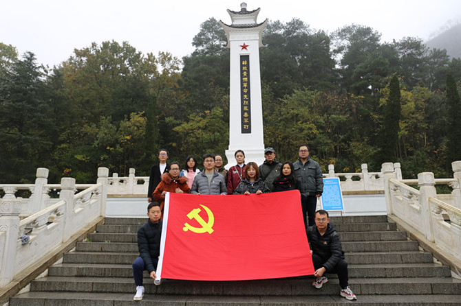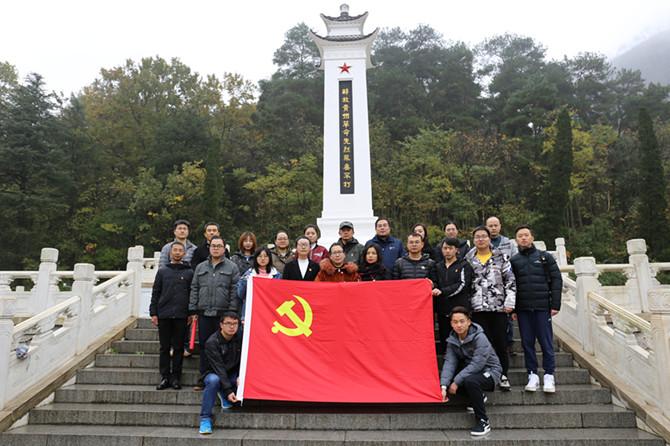 全体党员同志佩戴党员徽章,在贵州革命烈士纪念碑前了解解放贵州革命烈士情况后,面向纪念碑鞠躬默哀并环绕瞻仰。