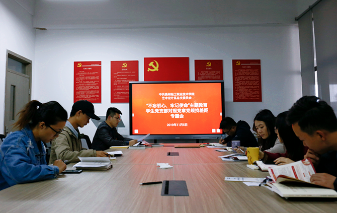 2019年11月5日下午2点,艺术设计系党总支学生党支部召集全体党员同志,在党员活动室开展了“不忘初心、牢记使命”对照党章党规、以及十八个是否找差距的专题会议。