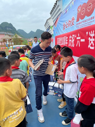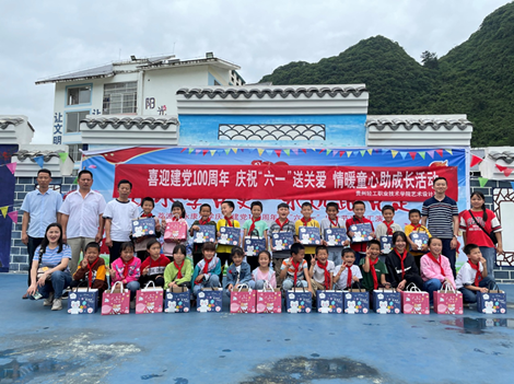 2021年6月1日,艺术设计系派驻乡村振兴荔波县黎明关水族乡德门村第一书记宋庆胤,在永康小学开展庆祝“六一”送关爱、情暖童心助成长活动。