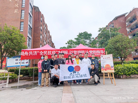 我系乒乓球社于2021年5月24日在一食堂门口开展以同舟共济“全民抗疫”为目标,坚持听党指导为核心的系列活动,号召大家响应“全民争做疫情防控的践行者和宣传者”并履行其义务,坚定广大人民群众的抗击肺炎疫情的决心,为祖国打赢疫情战坚奉献一份力量。 本次活动分为(党史与疫情防控常识)综合知识答题、青蛙王子吹乒乓球游戏、抽奖环节的三个内容。