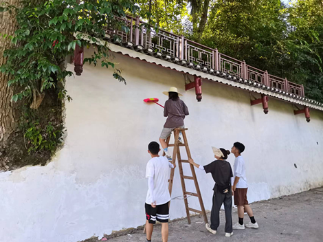 下午2点,“艺绘未来”三下乡志愿者服务队来到了三穗县滚马乡明德村组织开展“描绘美丽家乡助力民族团结”活动。志愿者们井然有序的开展了第一步工作,把需要绘画的墙壁进行了清理和补刷、随后根据实地情况调整设计方案,将整个墙面绘制工作分为三个主题板块:“乡村振兴”、“民族团结进步”、“村风民俗”。