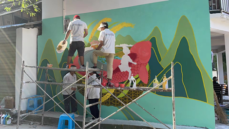 “艺绘未来”志愿服务队响应号召来到学院对口帮扶的剑河县麻栗村,在驻村第一书记邓志刚的协调下,指导老师杨雪、杨晨宇带领团队深入调研,以和美城乡四大行动,民族传统文化、民族团结进步、乡村振兴为主题,绘制了400余平米墙绘,为为美丽乡村建设助力。七年来,艺术设计系学子始终坚持利用三下乡为广大农村带去美丽色彩。