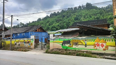 炎炎夏日,走进贵州省黔东南苗族侗族自治州剑河县麻栗村,干净整洁的乡村小道映入眼帘,墙壁上刚完成的创意彩绘引来不少村民驻足观看。