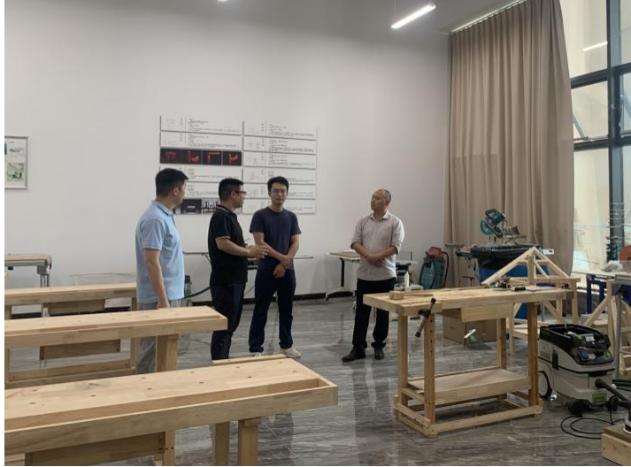 当日,在艺术设计系谢春涛主任的陪同下,罗建军副主任一行先后参观了木工赛项和时装技术赛项的集训现场。在木工赛项集训区,由陈逸龙老师团队指导的学生孙接武正全身心投入备赛,展现出积极的训练状态;在时装技术赛项集训场地,刘俊老师团队指导的学生韦德梦也在有条不紊地进行训练,全力为大赛做准备。此外,一行人还参观了艺术设计系艺术中心,了解集训综合保障环境。走访期间,罗建军副主任详细询问了训练计划、技术难点及后勤支持等情况,并就备赛细节与师生深入交流。