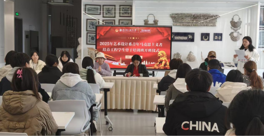 2025年11月14日,贵州轻工职业大学艺术设计系“青马工程”学生骨干培训班开班仪式暨首期专题培训,在踵美楼219美育中心举行。