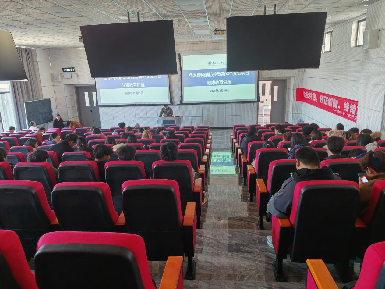 为做好校园艾滋病及冬季传染病防控,推进健康校园建设,在第38个世界艾滋病日到来之际,学校于2025年11 月25日开展“社会共治,守正创新,终结艾滋”为主题的健康教育讲座,共计 200 名同学参与。
