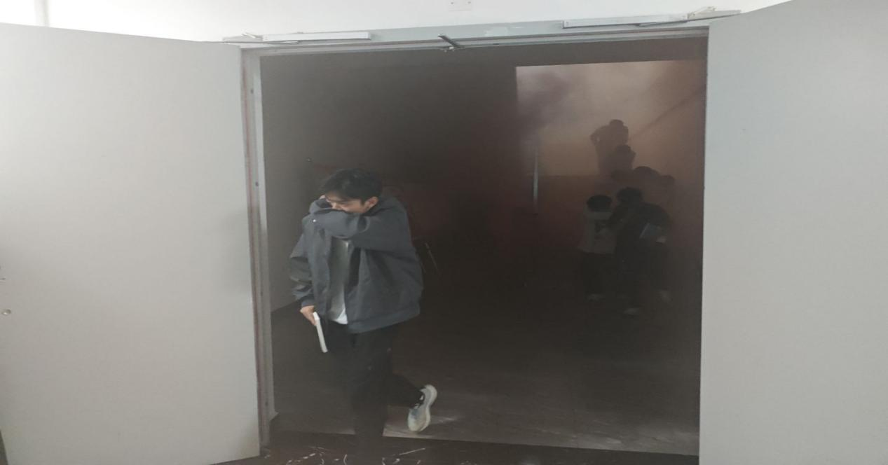 随着消防应急广播响起,消防疏散逃生演练正式开始。演练模拟真实火场环境,检验学校应急疏散预案的科学性。在老师的指引下,同学们迅速反应,用湿毛巾捂住口鼻,弯腰沿预定路线快速有序撤离至安全区域,整个过程紧张高效。