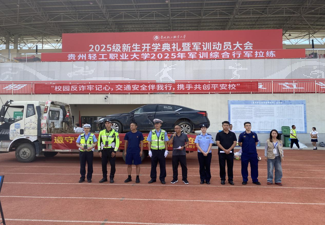 为切实提升2025级新生的安全意识和应急处置能力,帮助他们尽快适应大学生活并掌握必要的安全知识,9月17日下午,保卫处联合贵安新区公安局、贵安新区交警二大队、贵安新区消防救援支队泫水路消防救援站等多家单位,在学院足球场精心组织了一场集交通安全、应急逃生、反诈防诈于一体的综合安全教育活动。