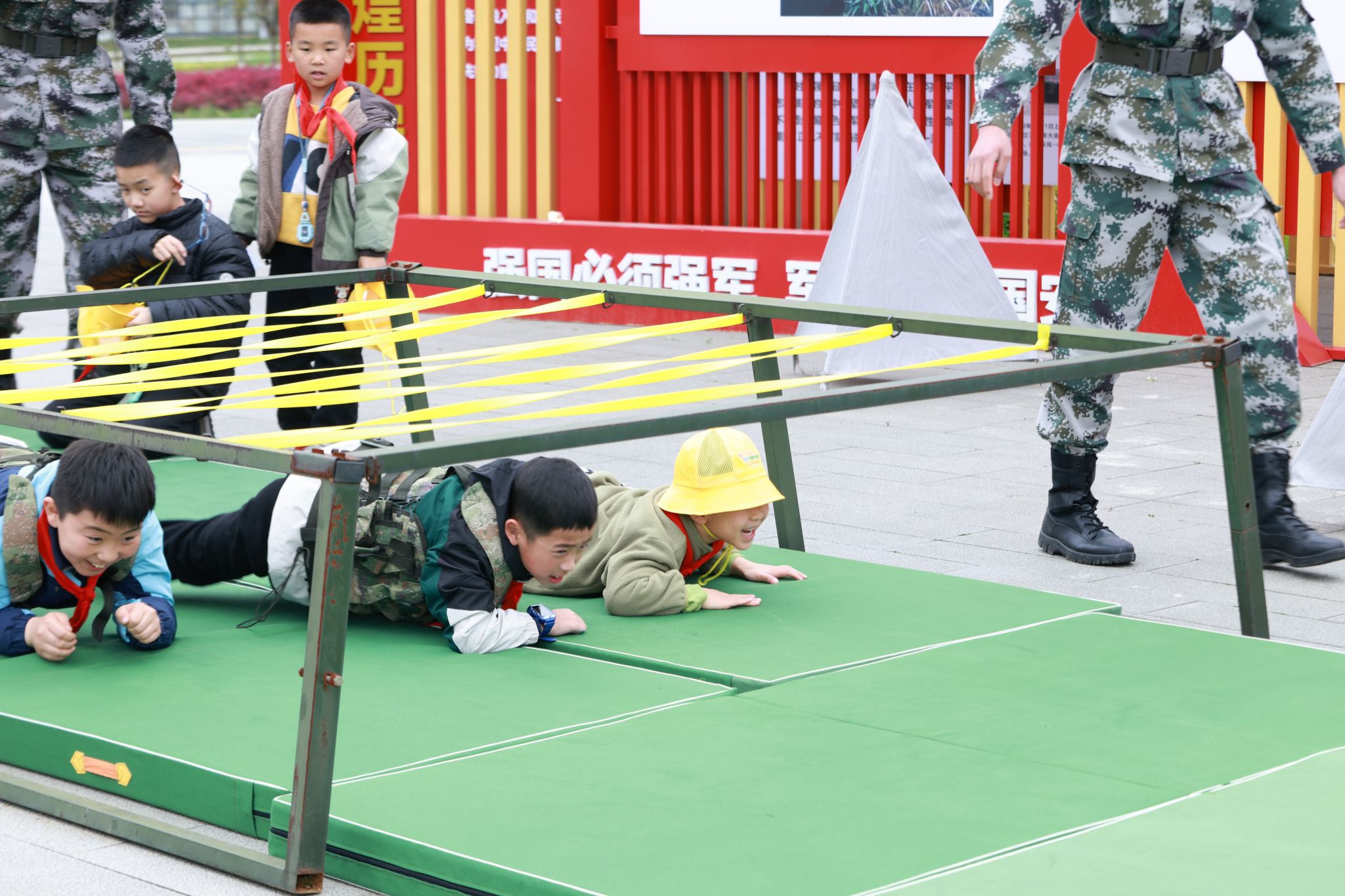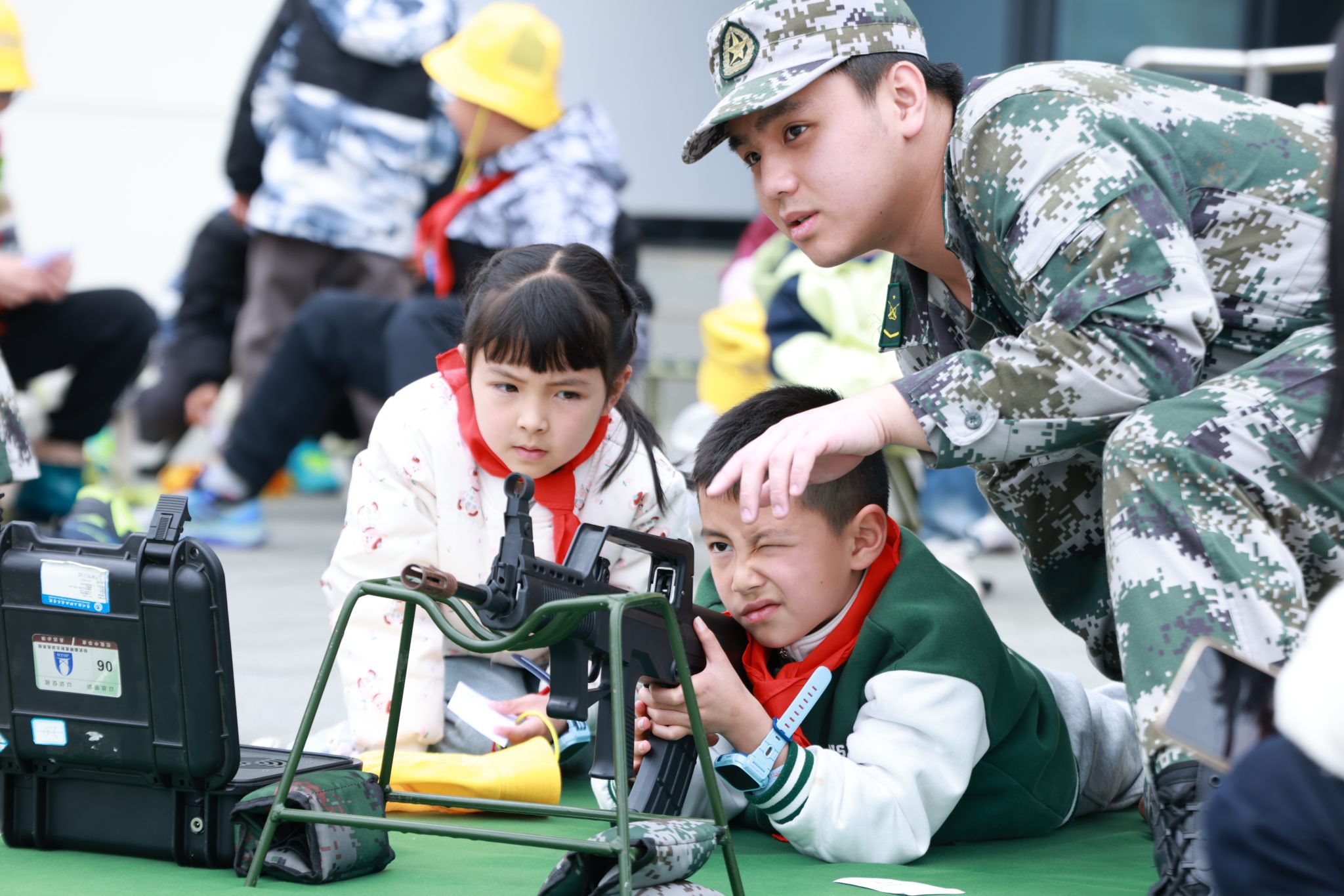 随后,幼儿组与少儿组按照专属活动安排,开启了首日的特色研学课程。幼儿组走进图书馆,参与爱国主题教育绘本课与手工剪纸体验,在趣味阅读与指尖创作中感受红色文化与非遗魅力;少儿组则分为两队,分别开展爱国主题教育课与沉浸式军事体验课,红色小故事、互动问答让爱国精神入脑入心,激光打靶、模拟投弹等项目锤炼了孩子们的意志品质,增强了国防观念。