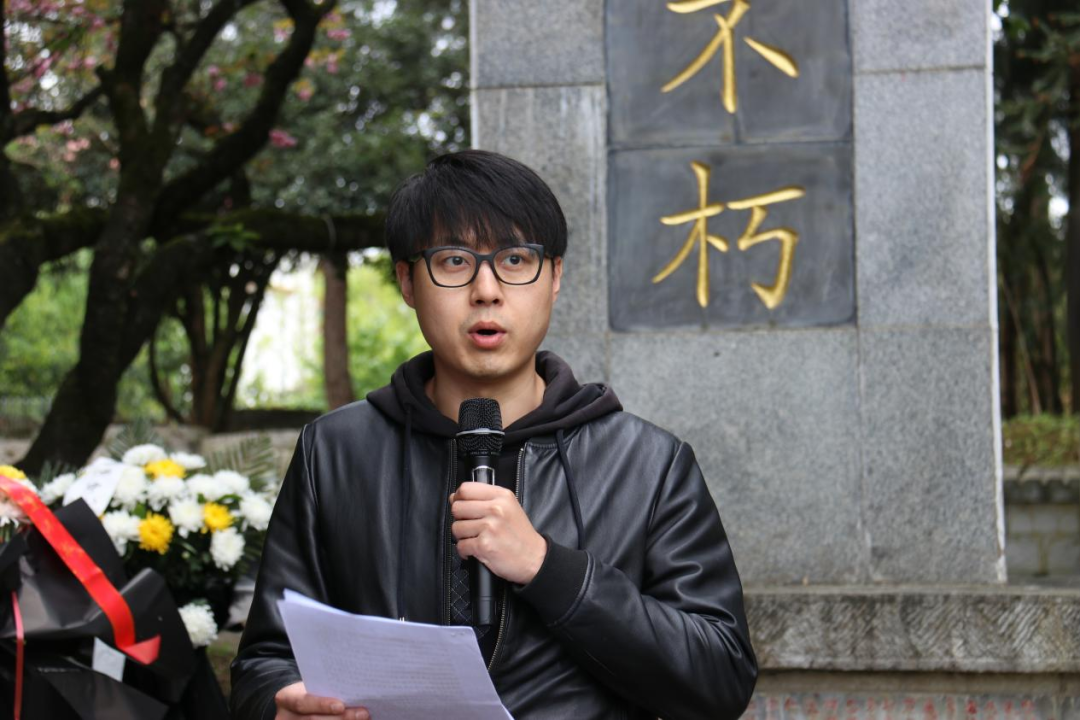 系学生党支部书记、团总支书记姜少宁在致辞中强调,清明节不仅是追思逝者的传统节日,更是回望历史、叩问初心的精神坐标。他向同学们提出三点希望:珍惜当下,做一个自律的人;传承精神,做一个有匠心的人;全面发展,做一个丰盈的人。勉励大家将对先烈的缅怀转化为日常奋斗的动力,在平凡中追求卓越,在实干中践行使命。