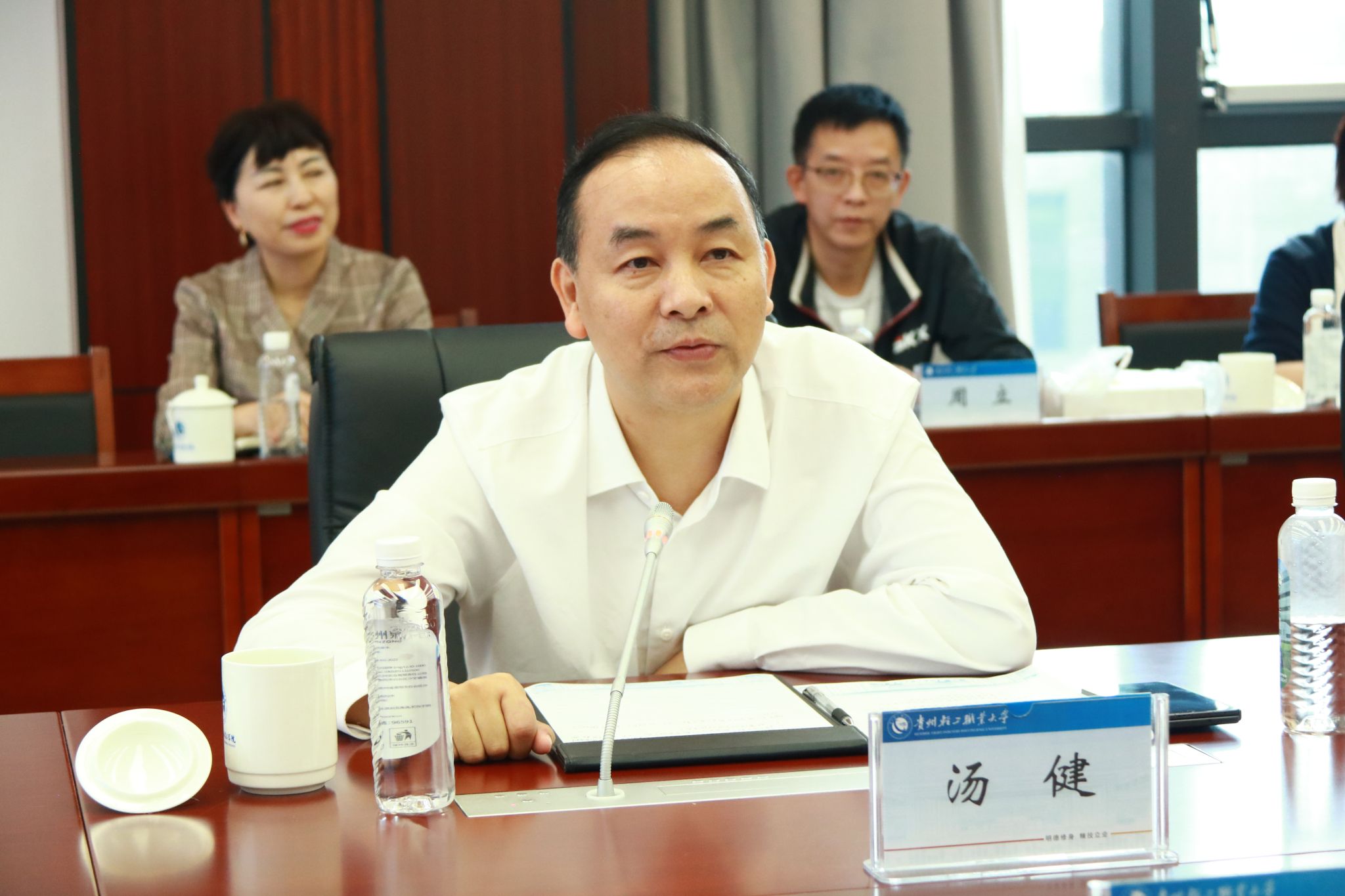 汤健深情回顾了在我校工作的岁月,他高度赞扬了我校近年来高质量发展取得的成就,对轻工职大未来的发展表达了美好的祝愿,希望两校进一步加强往来与交流合作,互相借鉴办学经验促进共同发展,共同为贵州高等教育事业贡献智慧和力量。