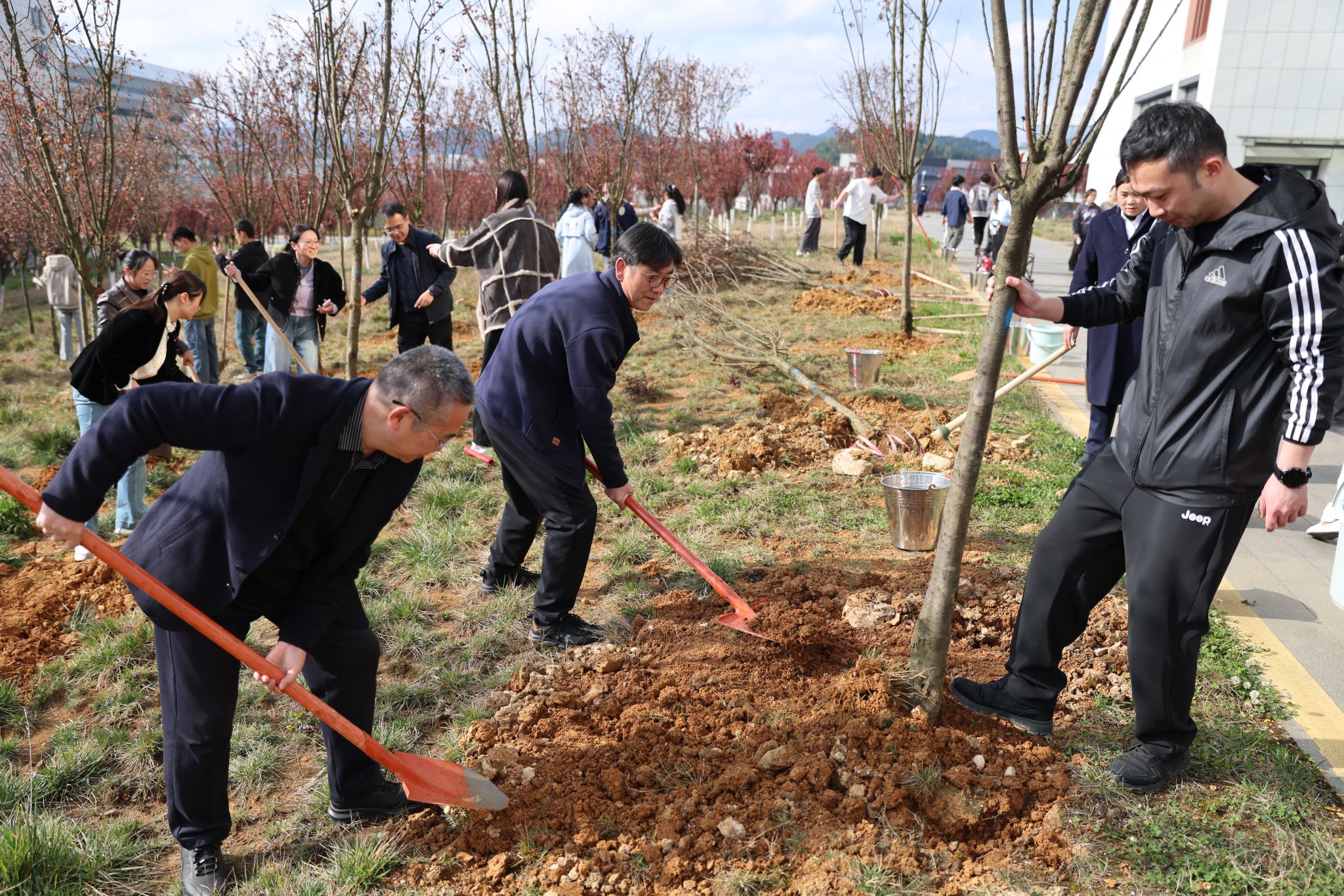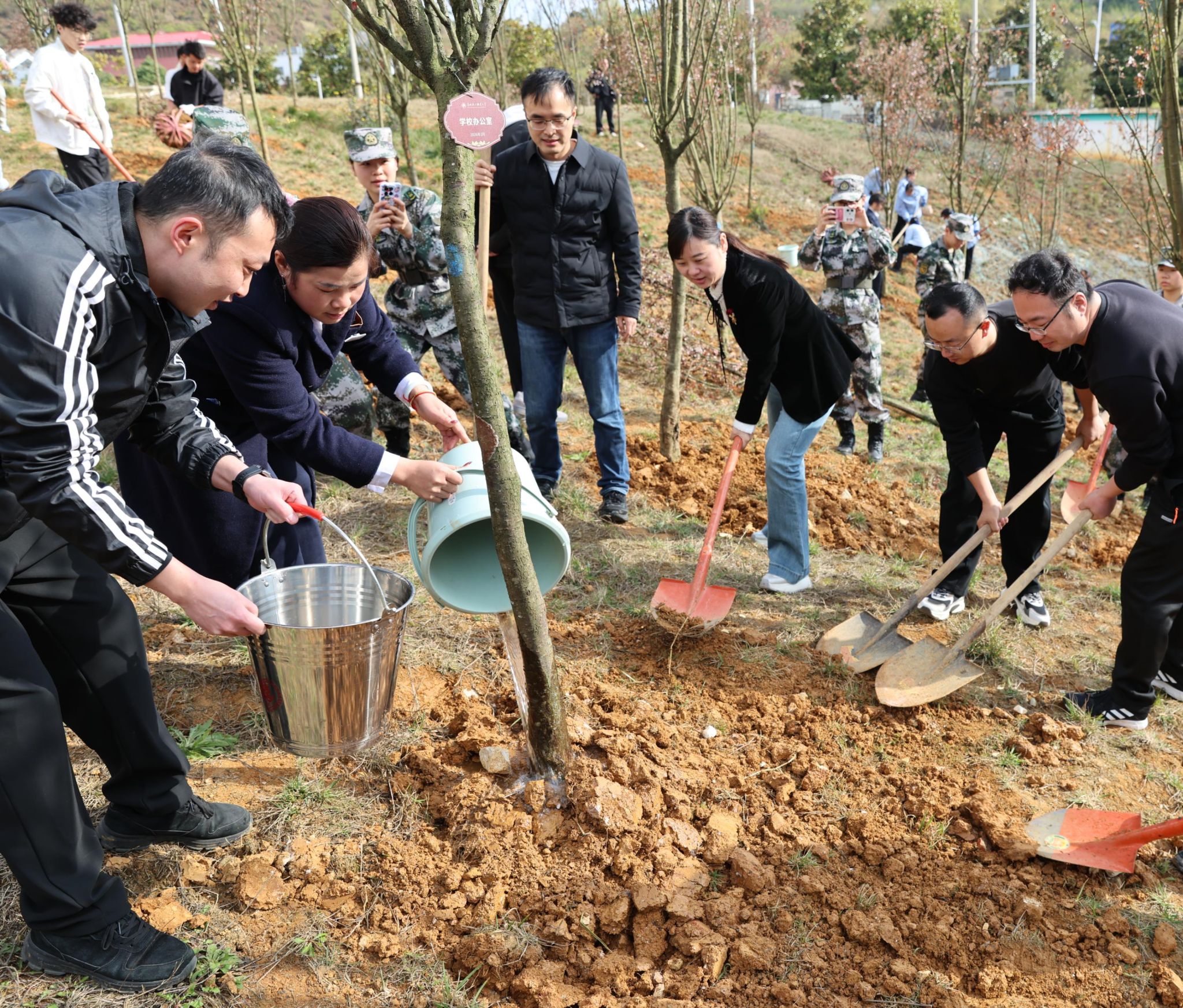 阳春三月,草木萌发。2026年3月12日,正值我国第48个植树节。为深入贯彻落实习近平生态文明思想,积极响应国家绿色低碳发展要求,学校以“履行植树义务,共建美丽校园”为主题,组织开展植树活动。学校党委书记张勇,党委副书记、校长杨天仪及校领导班子成员与相关部门负责人、师生代表、后勤工作人员一起参加了植树活动。
