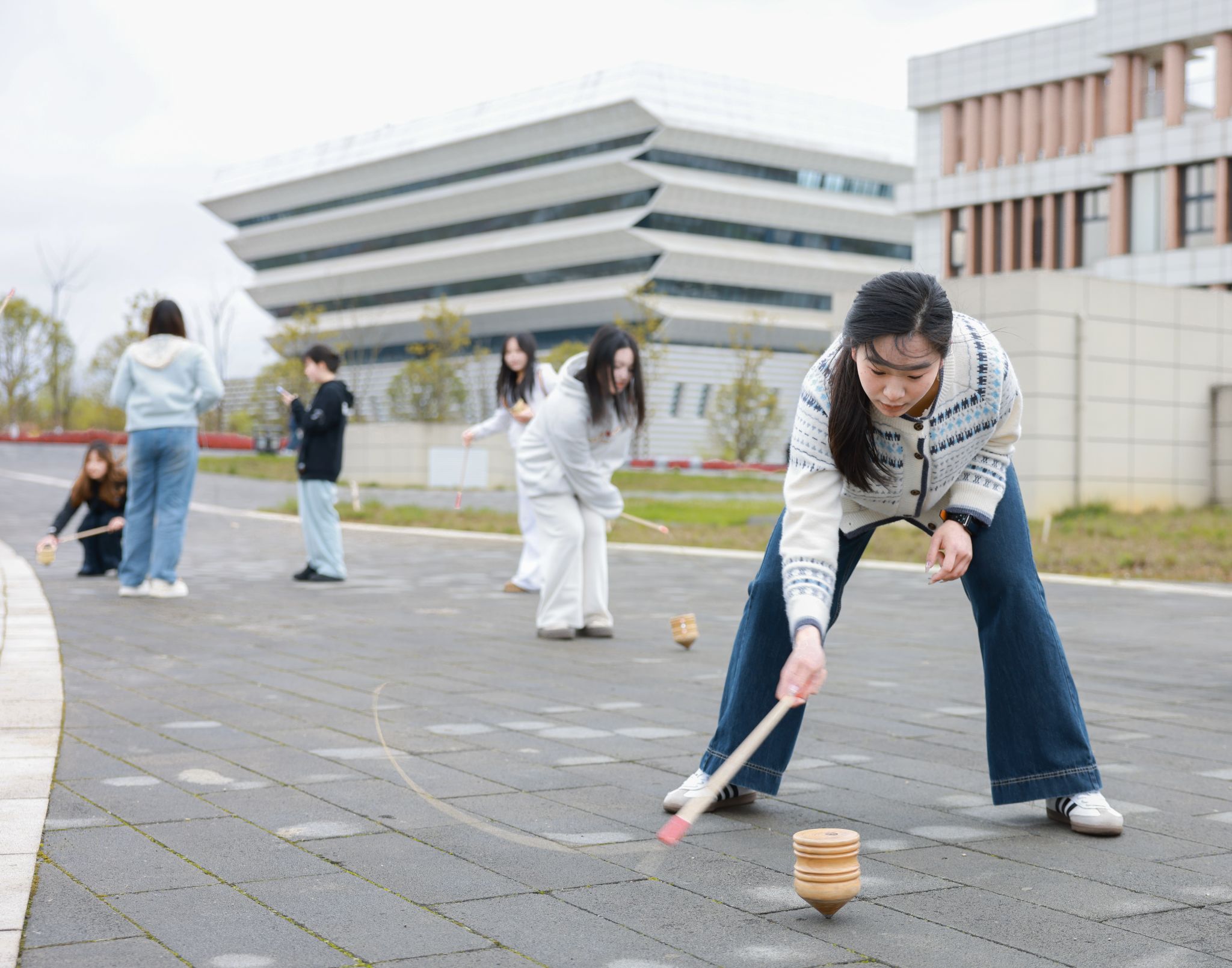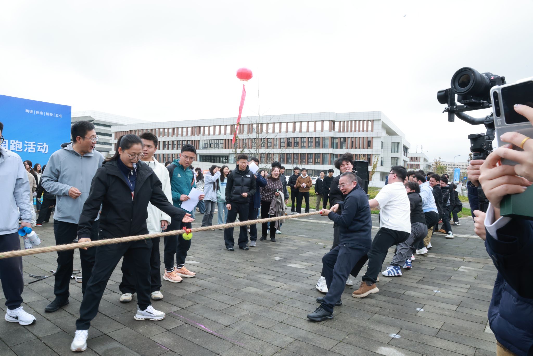 趣味活动现场更是精彩纷呈,团体项目与个人项目各有乐趣,处处洋溢着欢声笑语。拔河、趣味毛毛虫、袋鼠跳接力等团体项目中,各教学单位代表队默契配合、奋勇拼搏,参赛队员们凝心聚力、啦啦队的呐喊助威声此起彼伏,赛场上下连成一片,将团队协作的精神展现得淋漓尽致;套圈、小型保龄球、蛋跑、夹弹珠等个人项目趣味十足,吸引了众多师生参与,在轻松愉悦的氛围中体验运动乐趣。