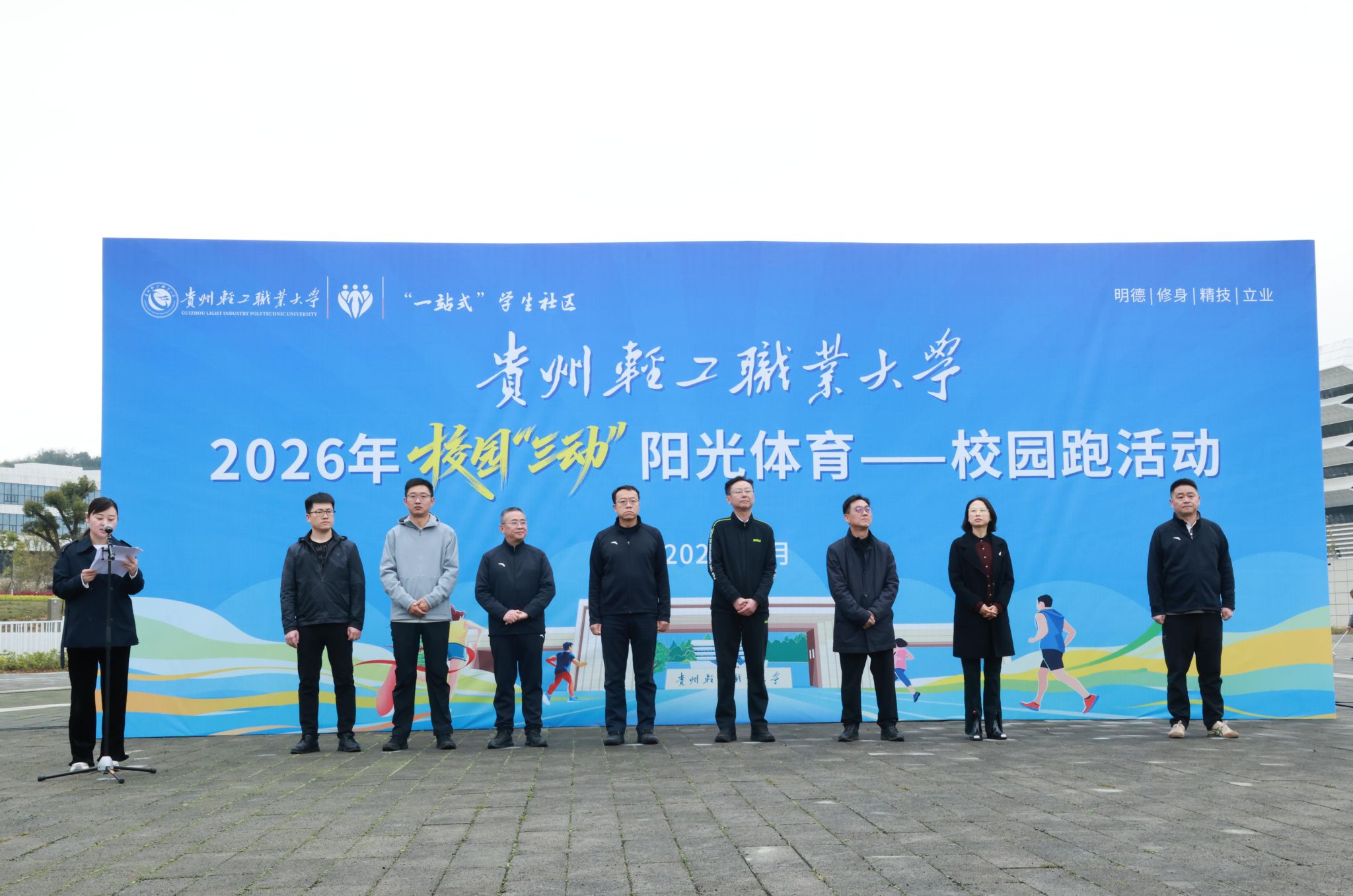 3月24日上午,贵州轻工职业大学2026年校园“三动”阳光体育校园跑活动在溯源广场正式启动。学校党委书记张勇,党委副书记、校长杨天仪等全体党委委员出席活动,各职能部门负责人、教职工代表、各教学单位教工团队及1000余名学生参加。